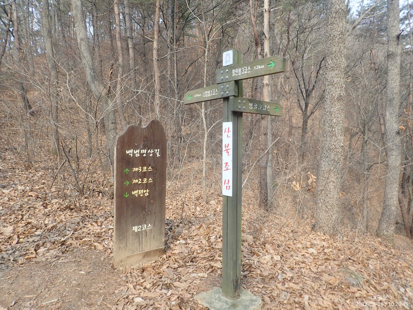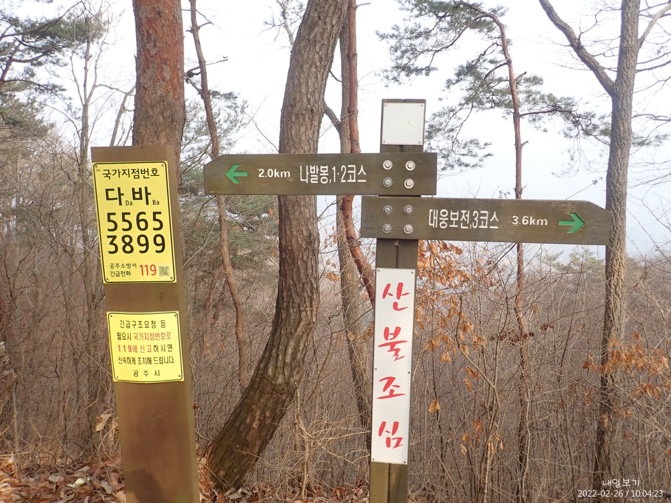 나발봉 직전(200m쯤) 이정목에 나발봉이 오른쪽(마곡사)으로 표시되어 있어 잠시 주춤. 이정목 방향을 수정해야 할듯하다.