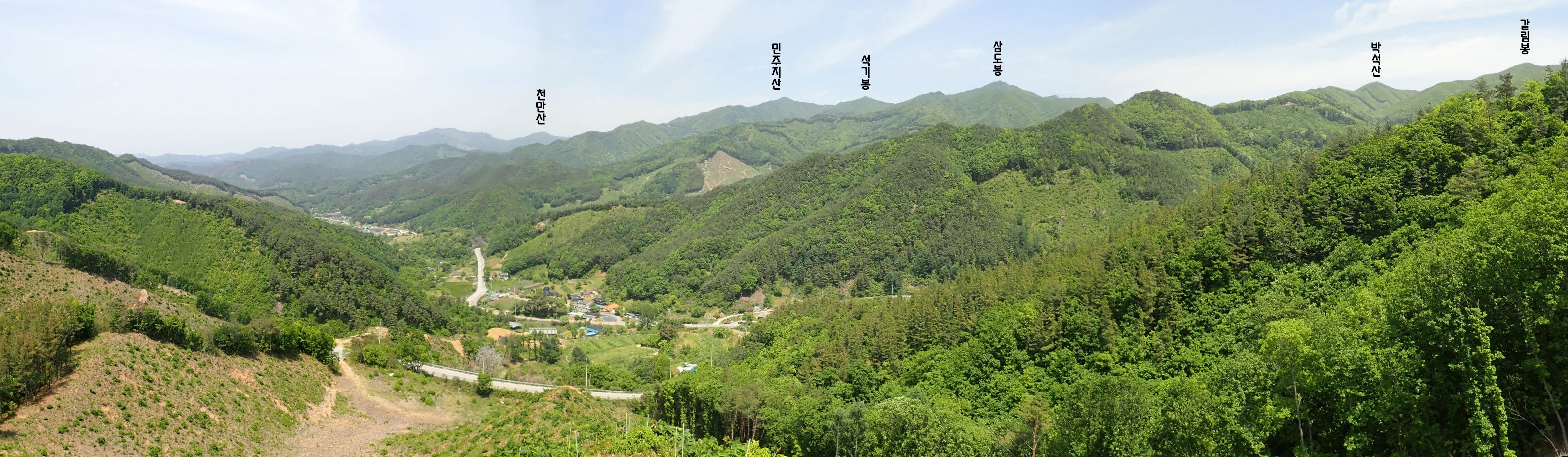 싸리재로 내려가던중 오른쪽 미천리 장자동마을.