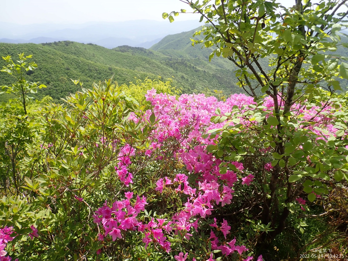 오래된 산불감시초소뒤에서 왼쪽과 직진 갈래길. 앞에 가신 가야산님에게 전화하니 오른쪽으로 진행하란다.