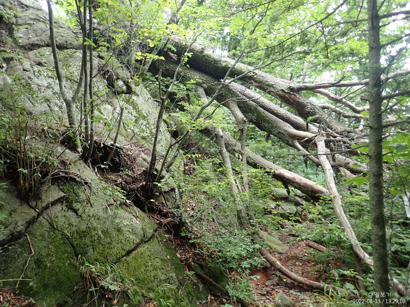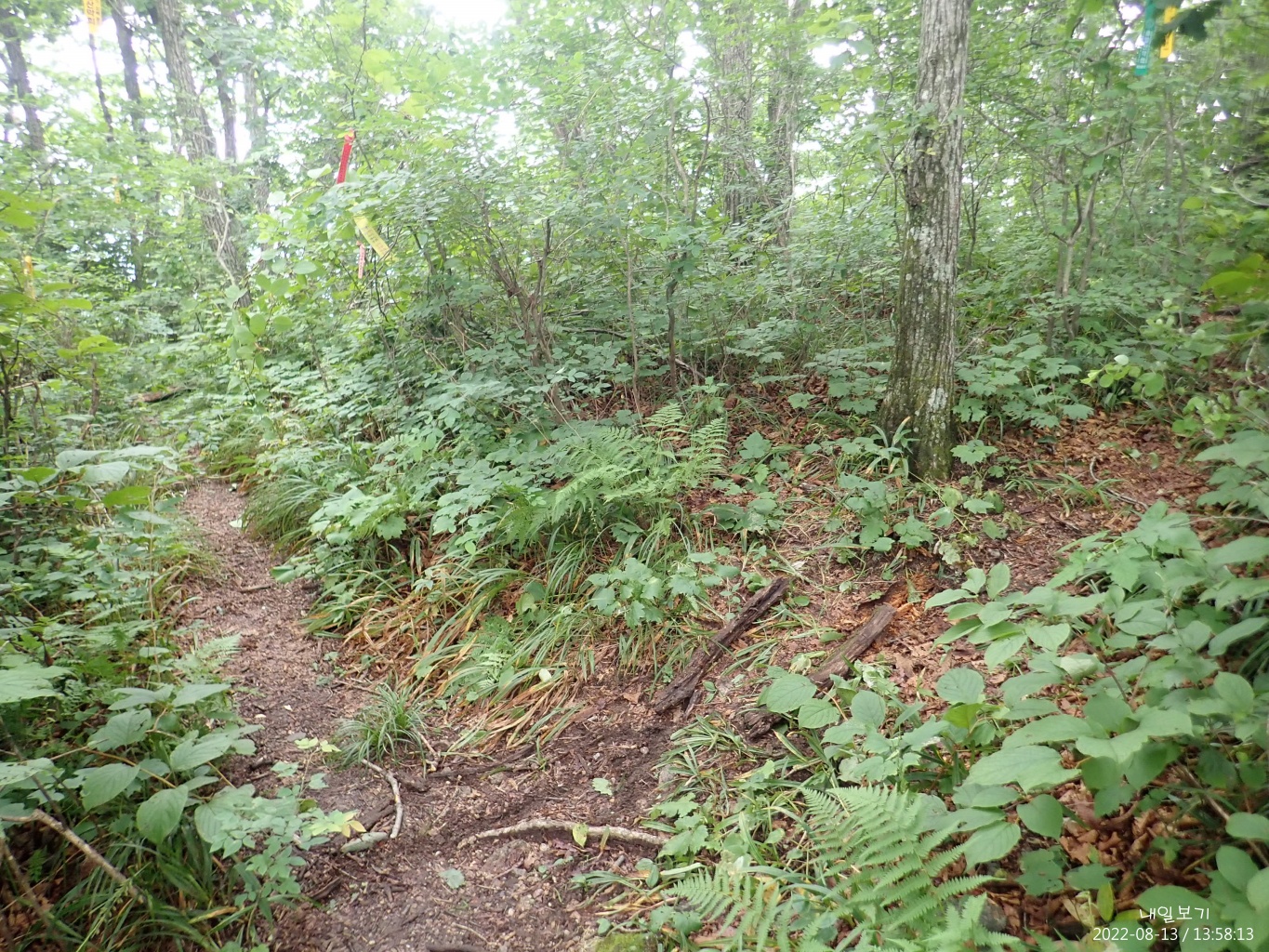 차돌배기 이정목에서 대간길로 70m정도 진행하다 오른쪽길로