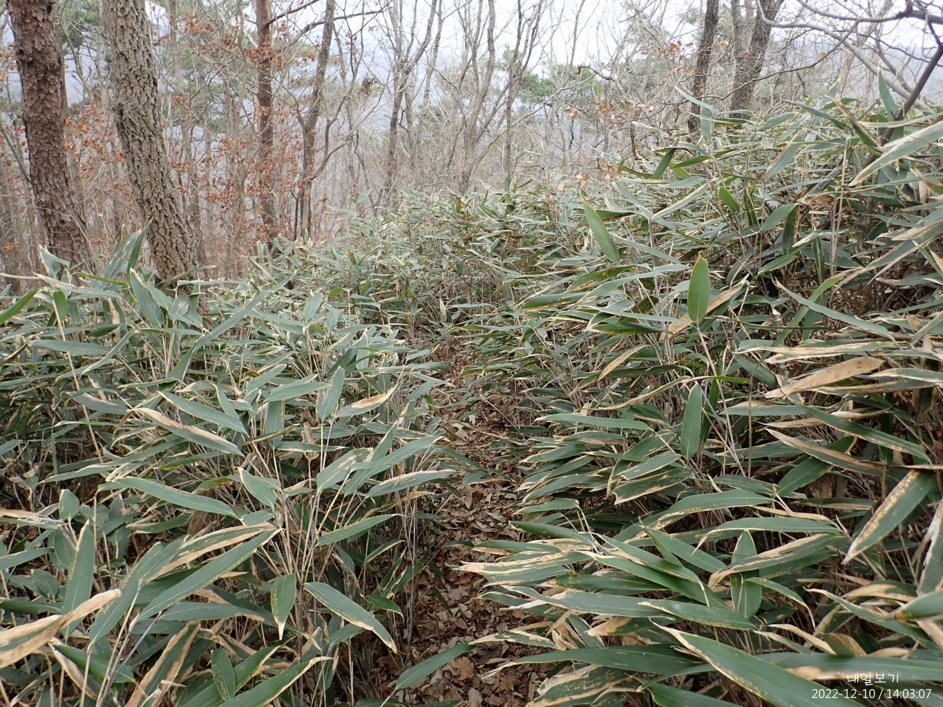 잡목과 산죽이 얽혀서 진행이 어려웠다.