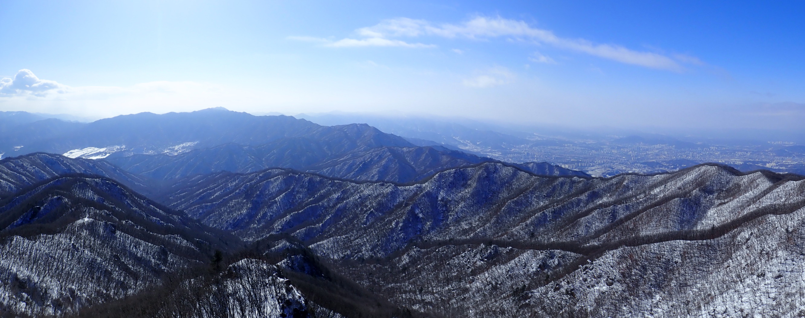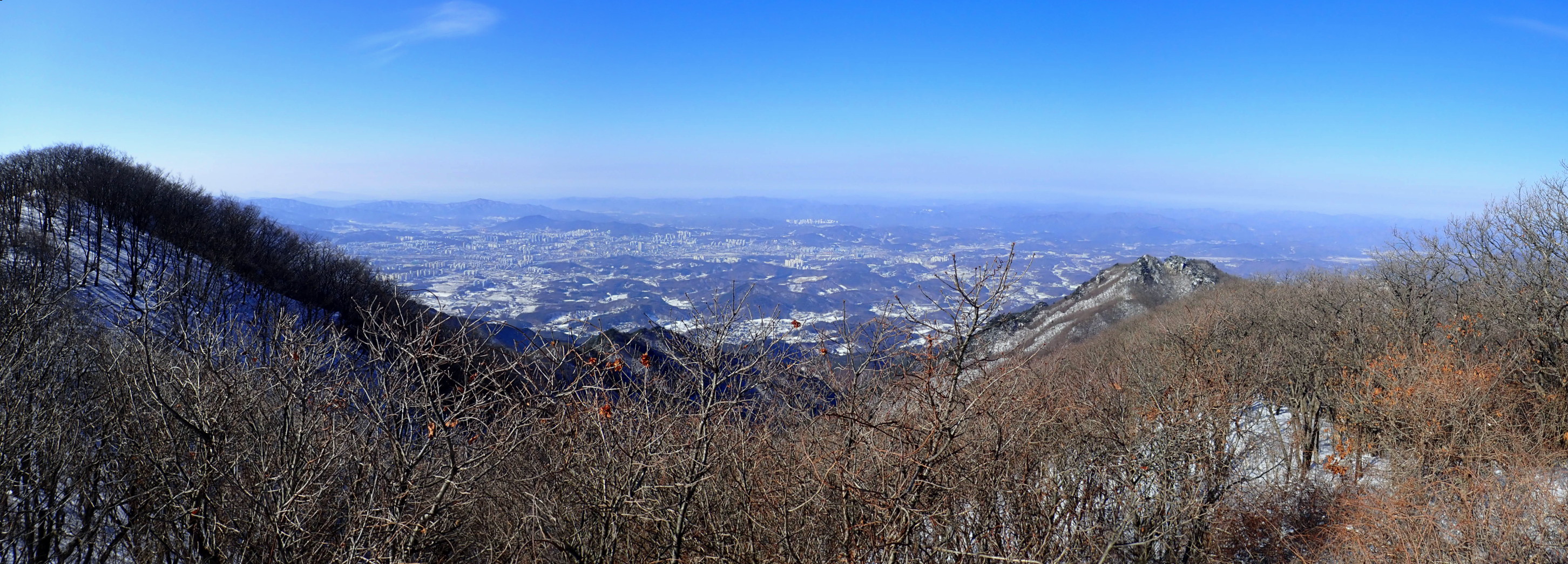 쥐너미재 안내판 데크에서 서쪽. 원주시