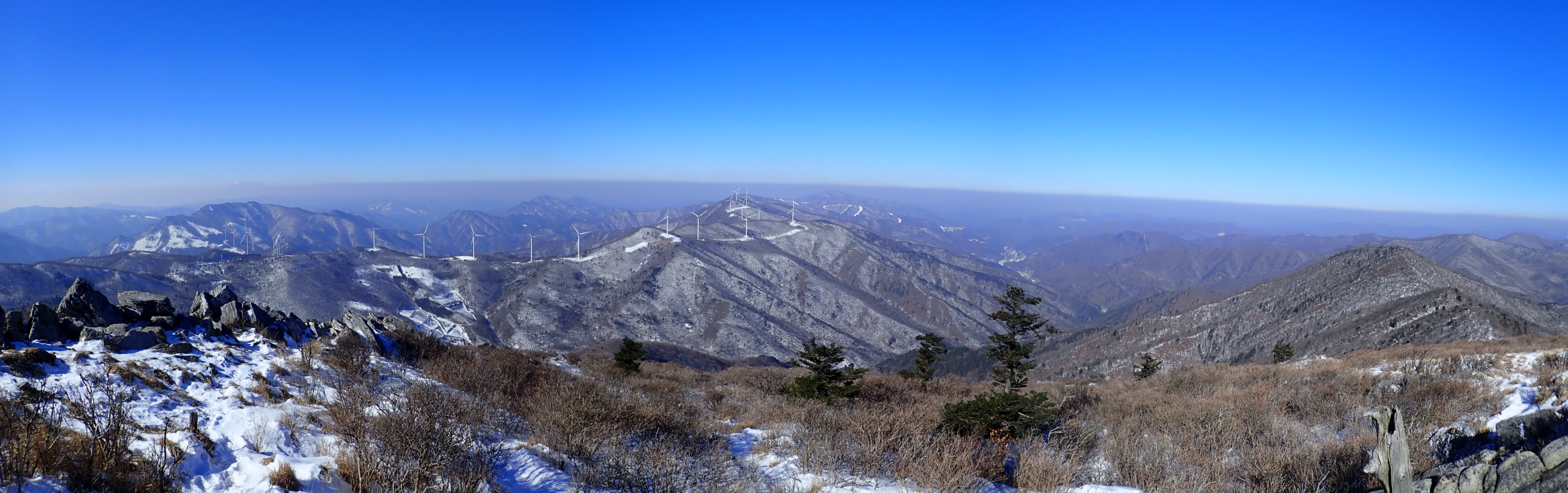 서쪽. 좌중간 장산, 가운데 백운산, 우중간 중함백과 은대봉