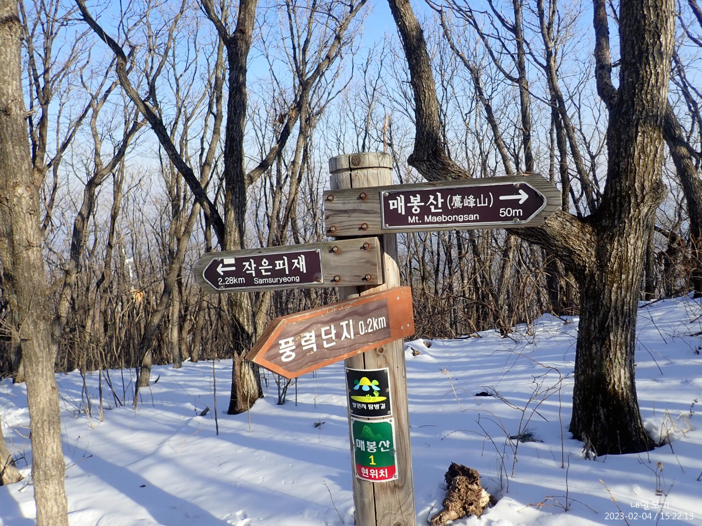 좀 수월히 간다고 임도따라 걷다가 잡목과 쌓인 눈을 헤치고 매봉산으로 올랐다.