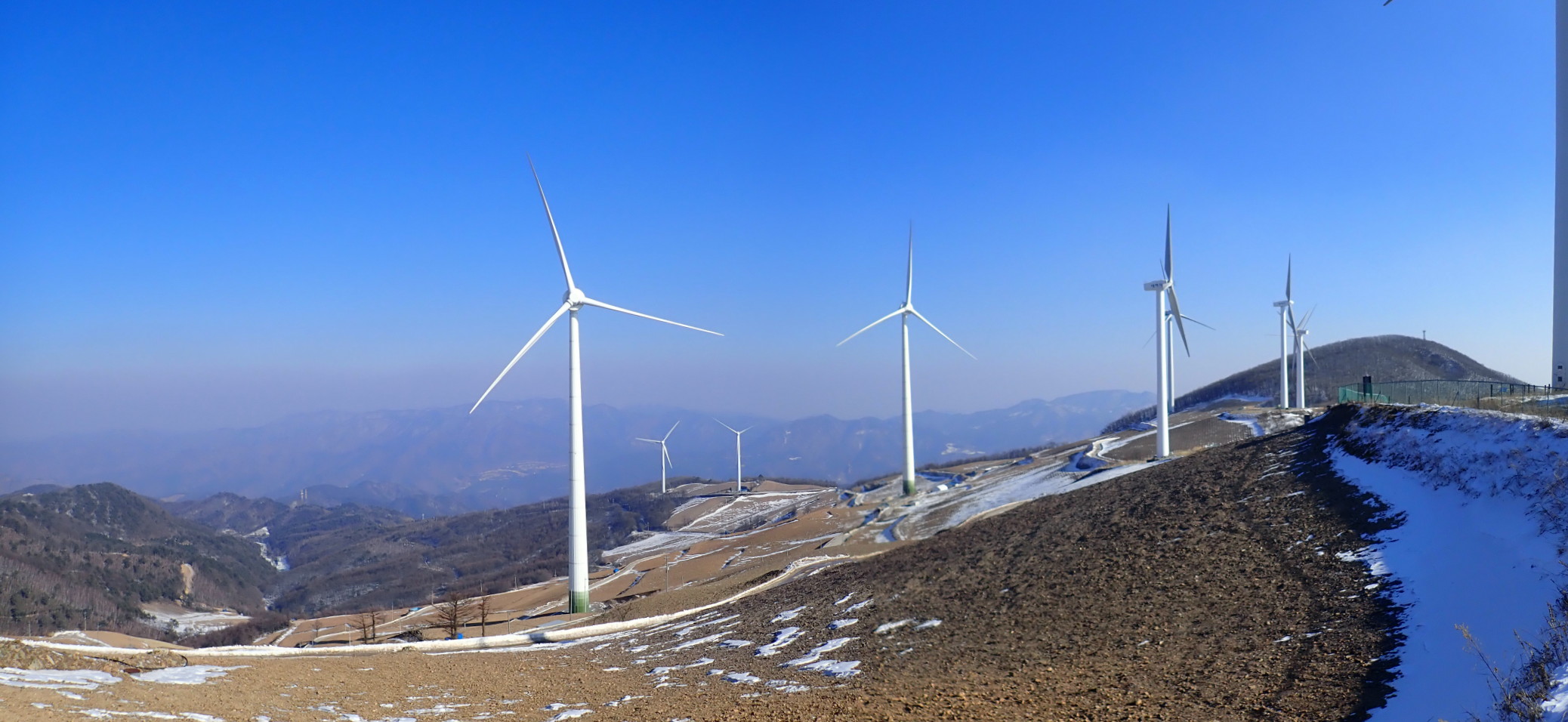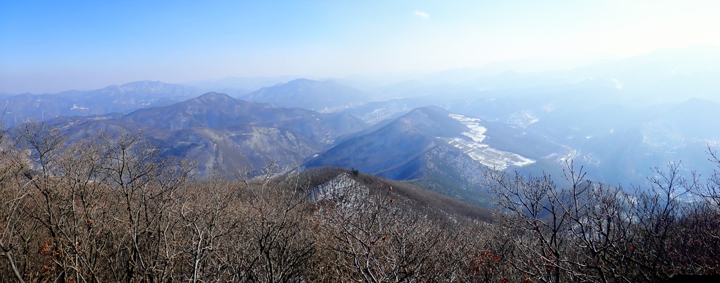 서쪽. 좌중간 장산, 가운데 백운산, 우중간 중함백과 은대봉