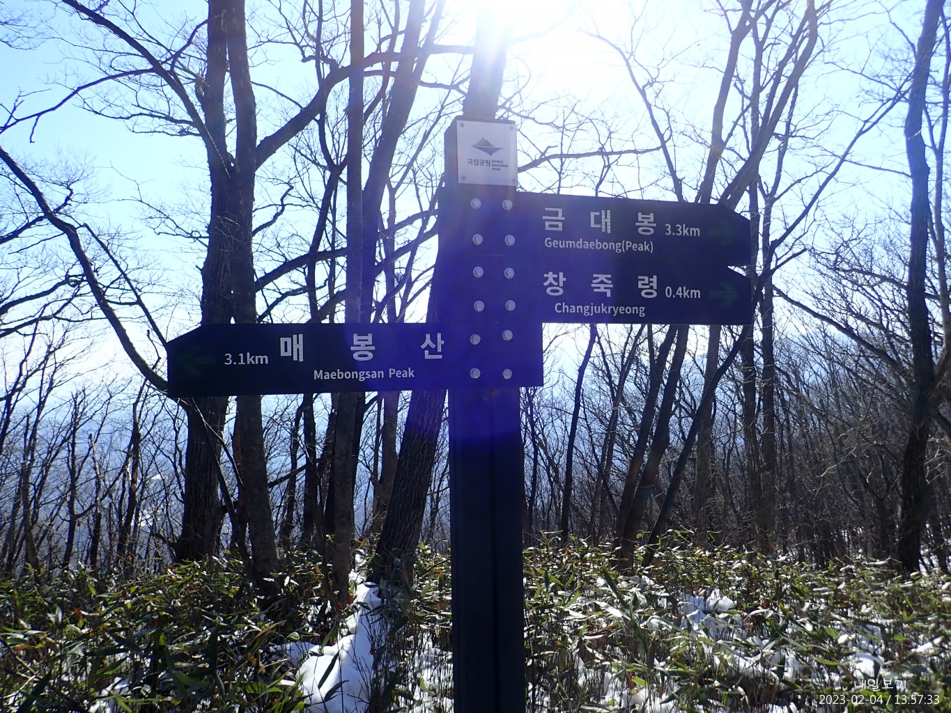 좀 수월히 간다고 임도따라 걷다가 잡목과 쌓인 눈을 헤치고 매봉산으로 올랐다.