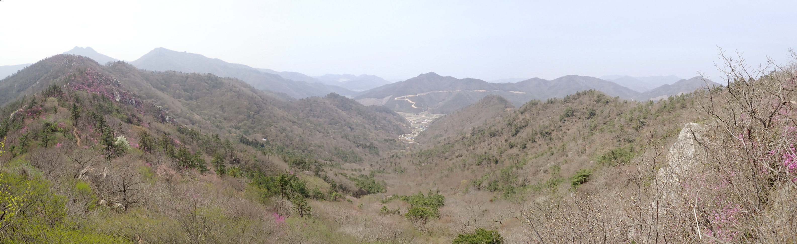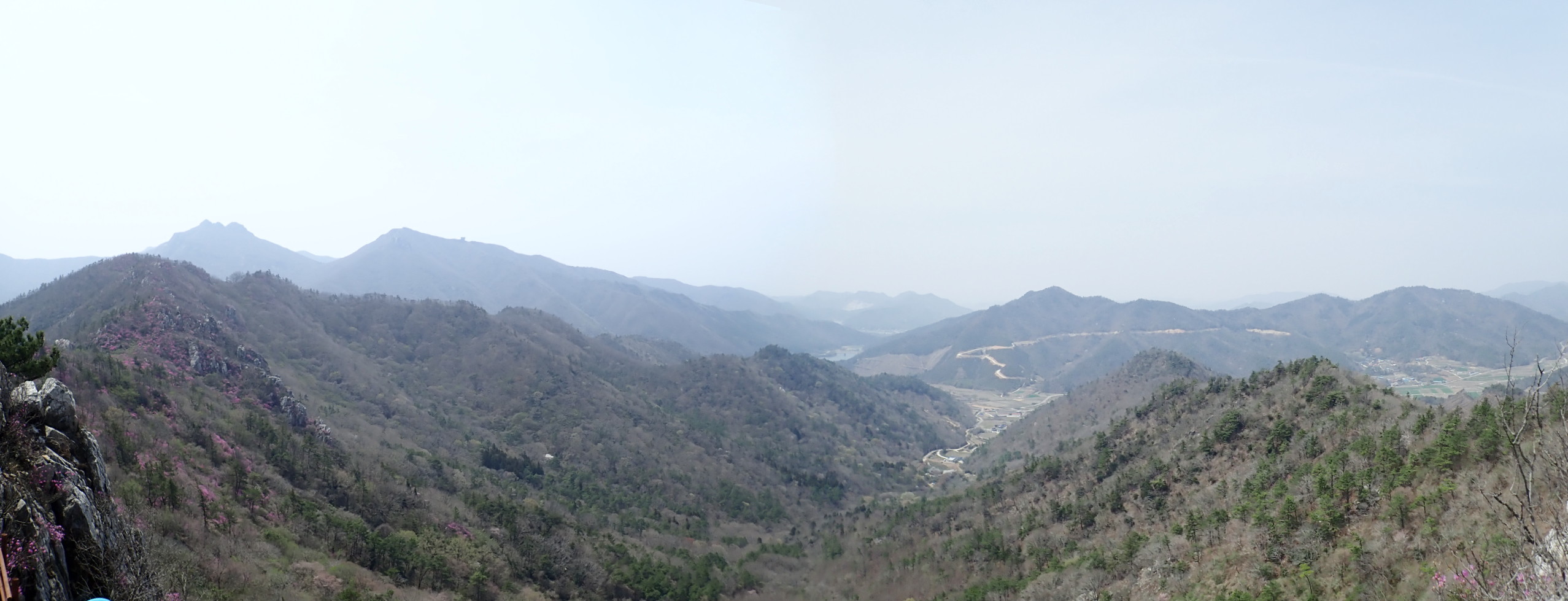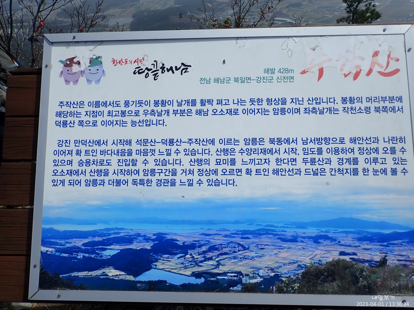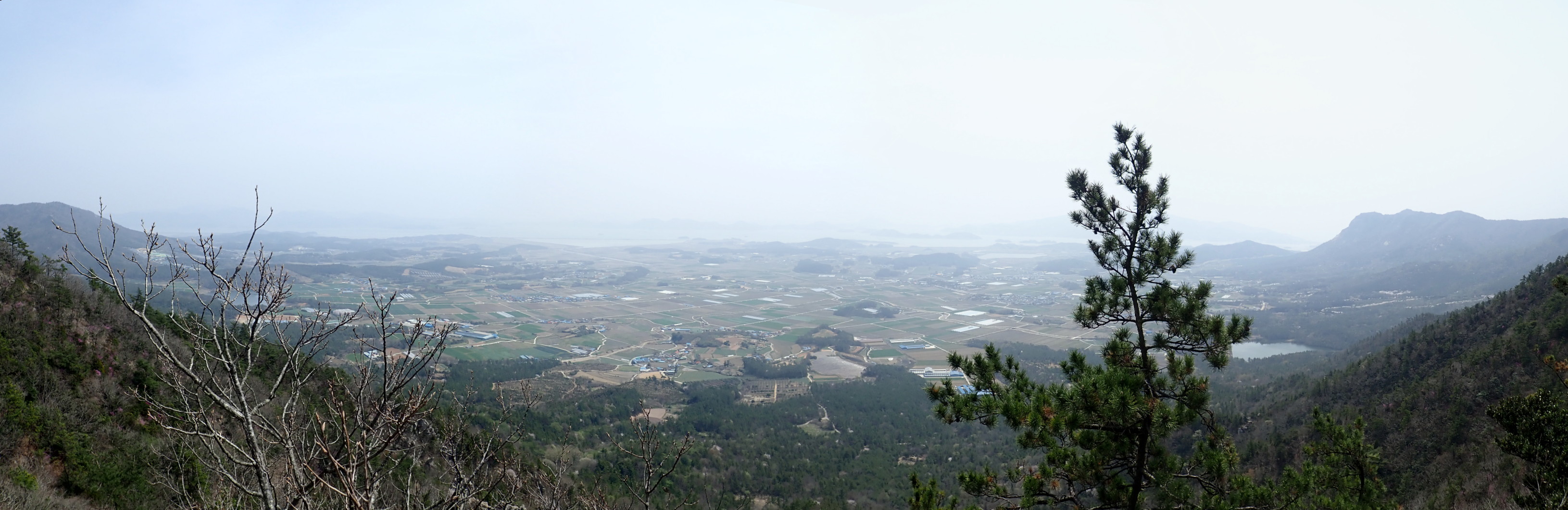왼쪽 멀리 두륜산 두륜봉과 노성봉. 가운데 멀리 병풍산과 태양산. 오른쪽 화원지맥능선.