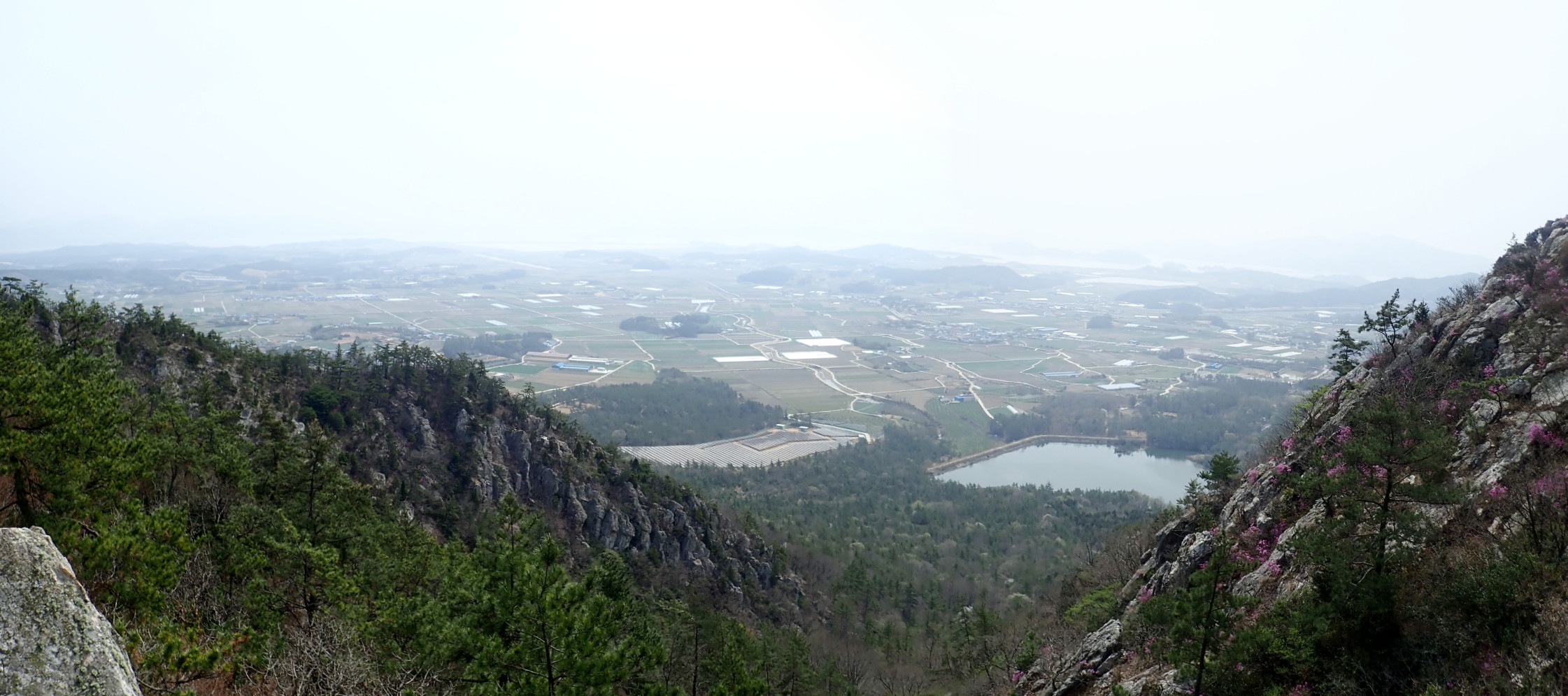 292.3봉(용굴바위)에서 남동쪽. 강진 북일면일원과 아래 흥촌저수지.