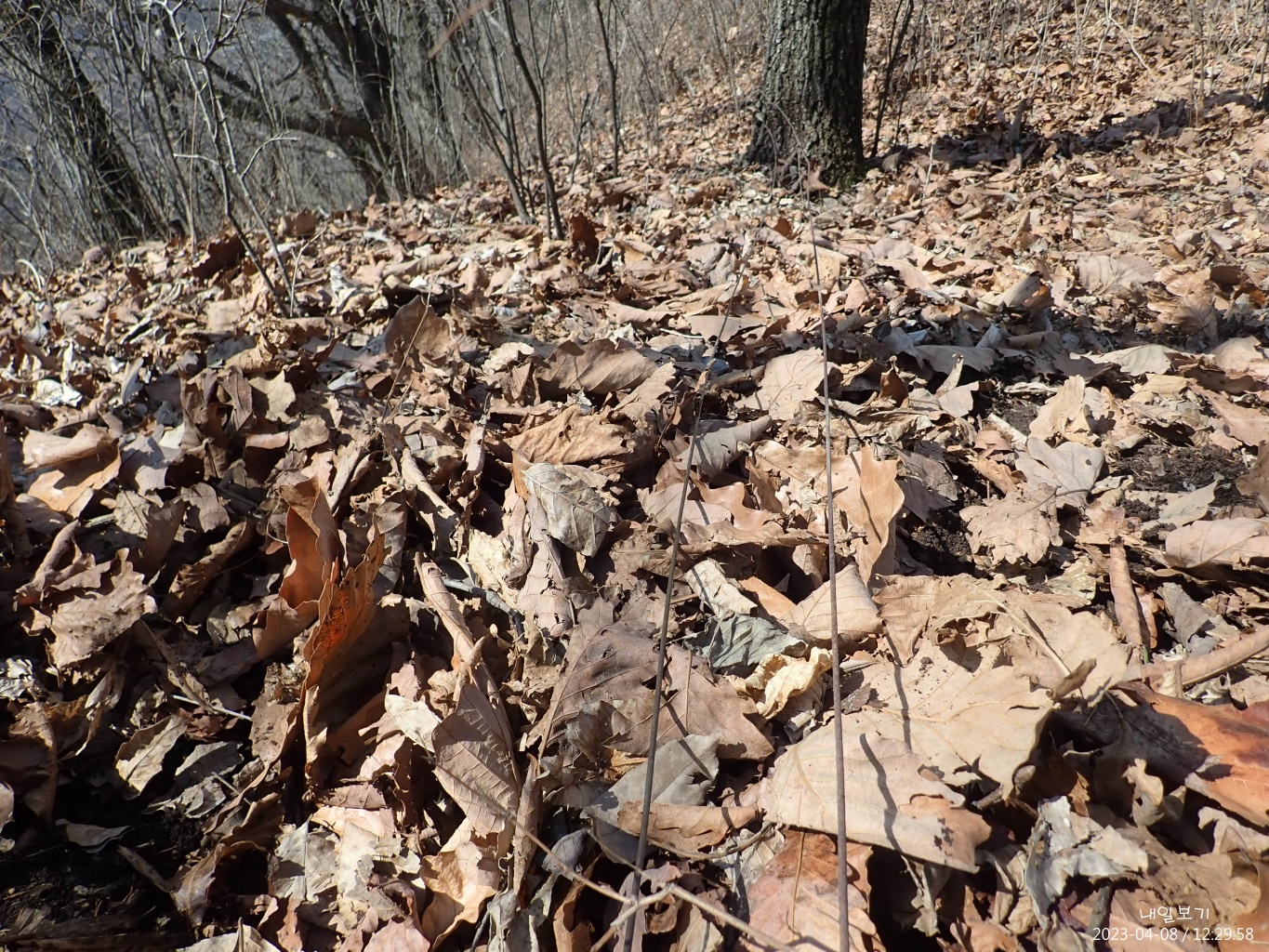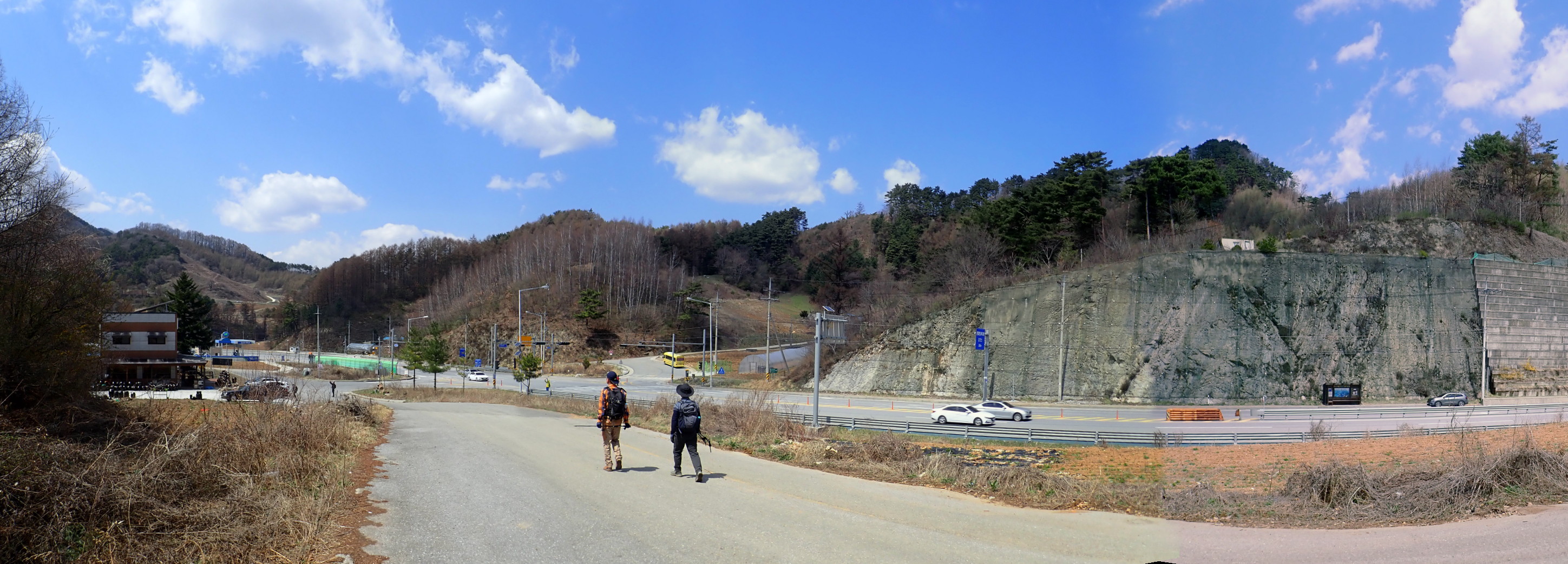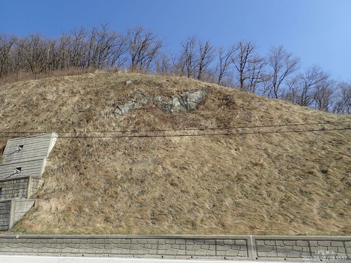 왼쪽 칼국수 식당에서 점심먹고, 강원남로(38국도) 건너 절개지로 이어갔다.