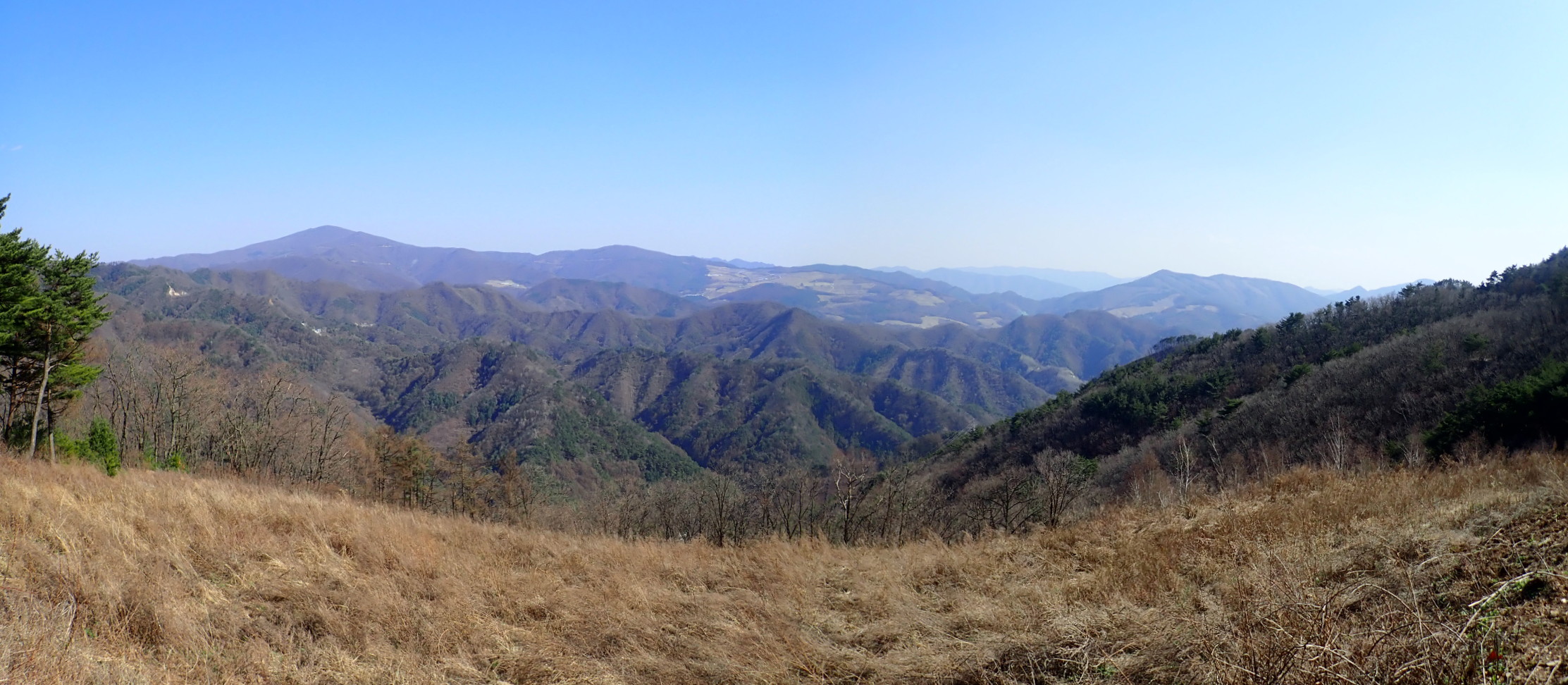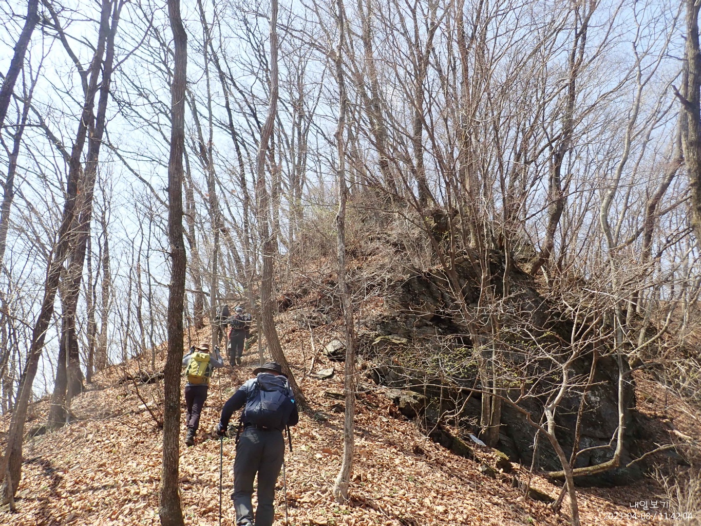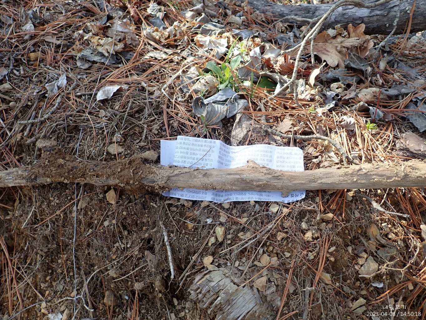 왼쪽 칼국수 식당에서 점심먹고, 강원남로(38국도) 건너 절개지로 이어갔다.