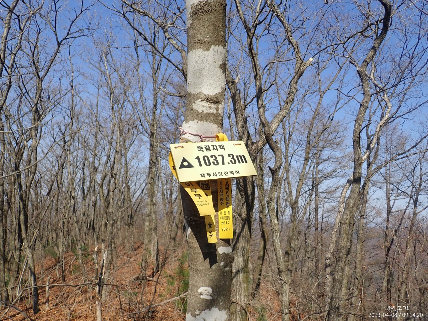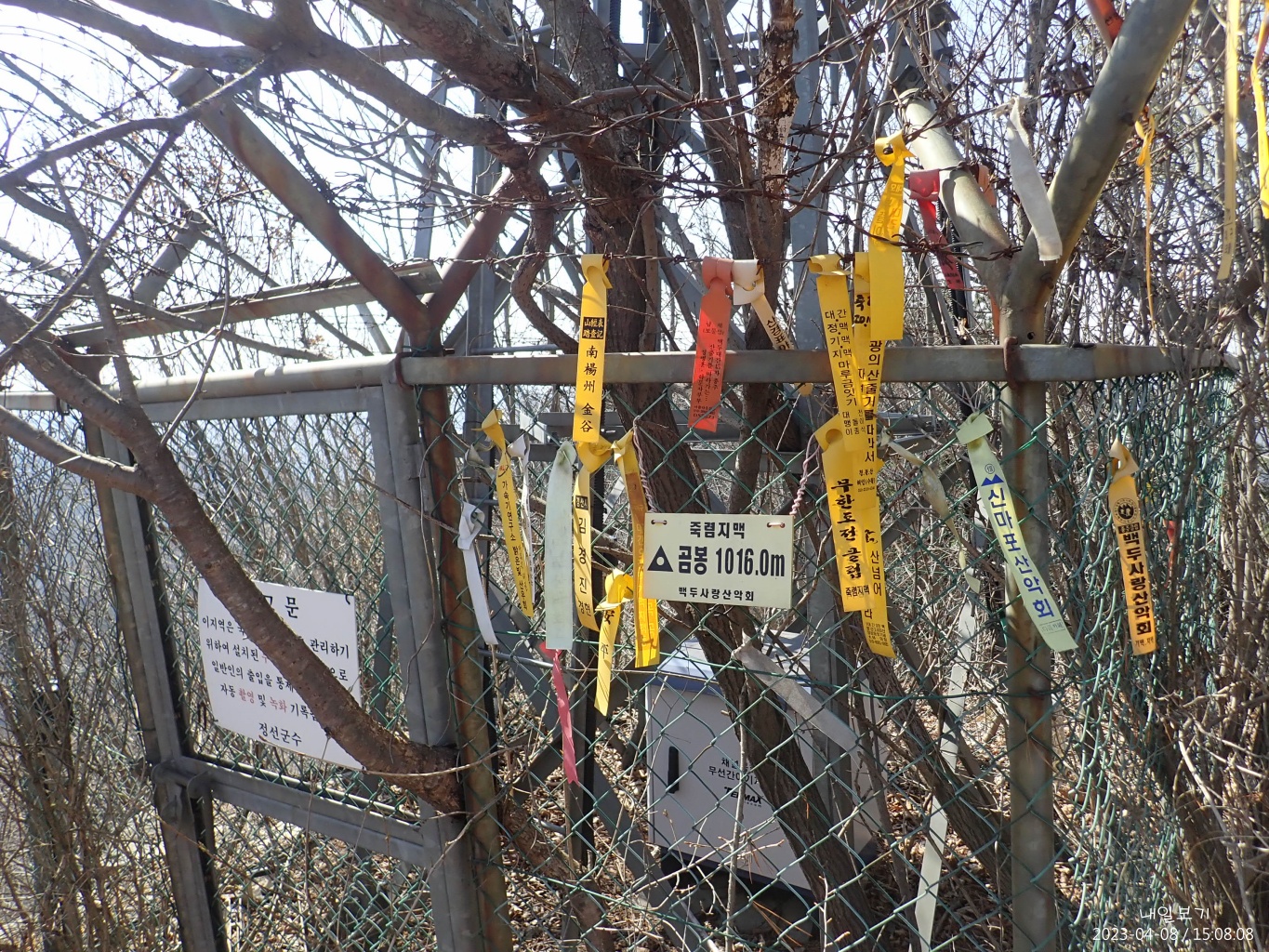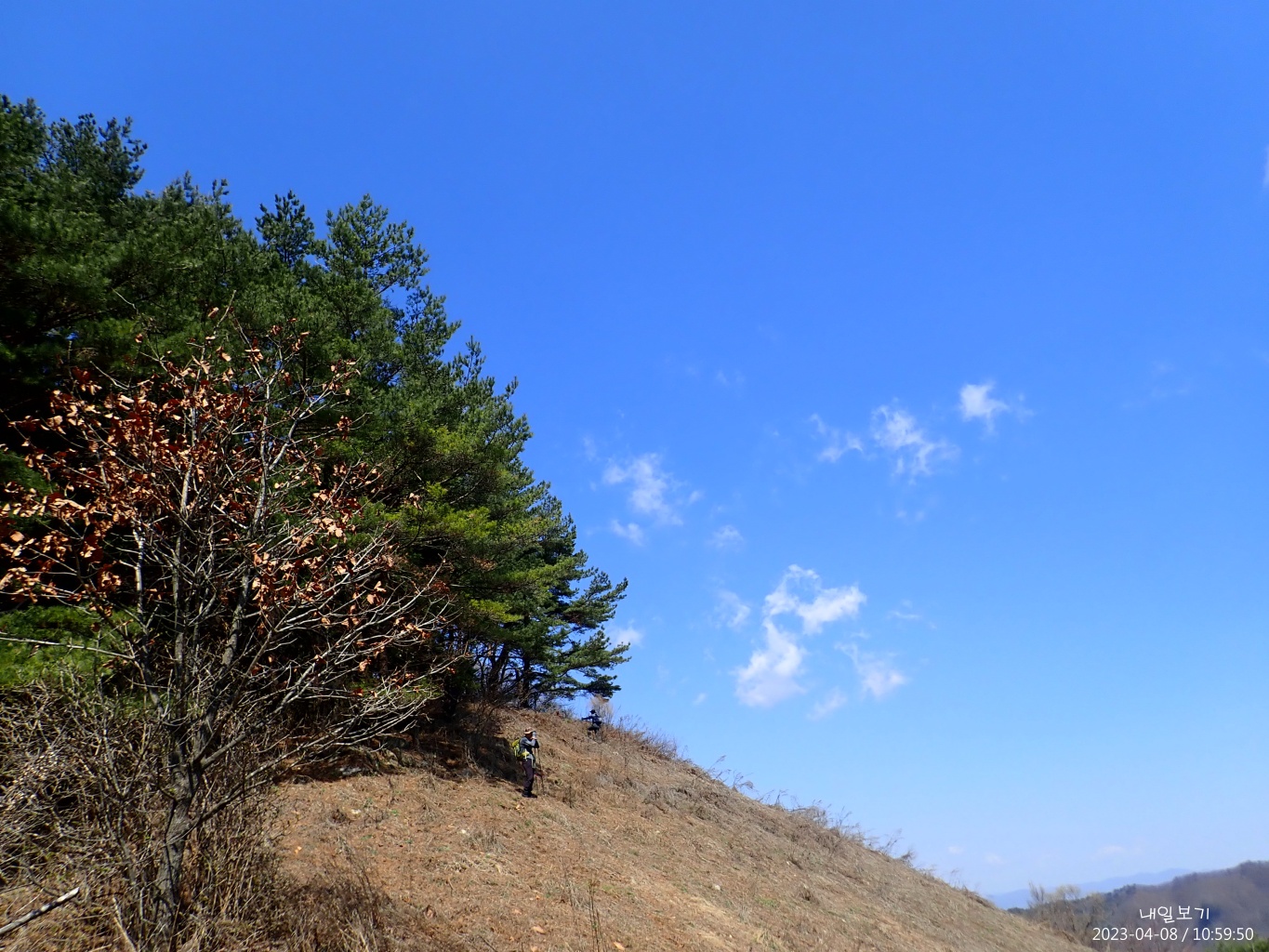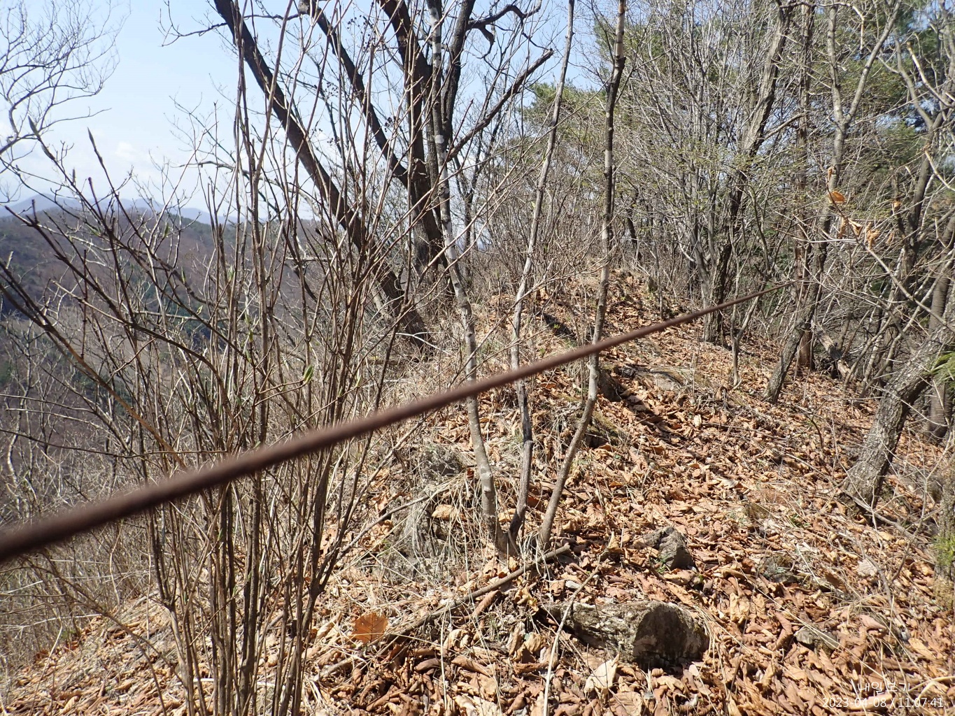 산양삼 재배지라서 그런지 제법 굵은 철사가 능선따라 이어져 있다.