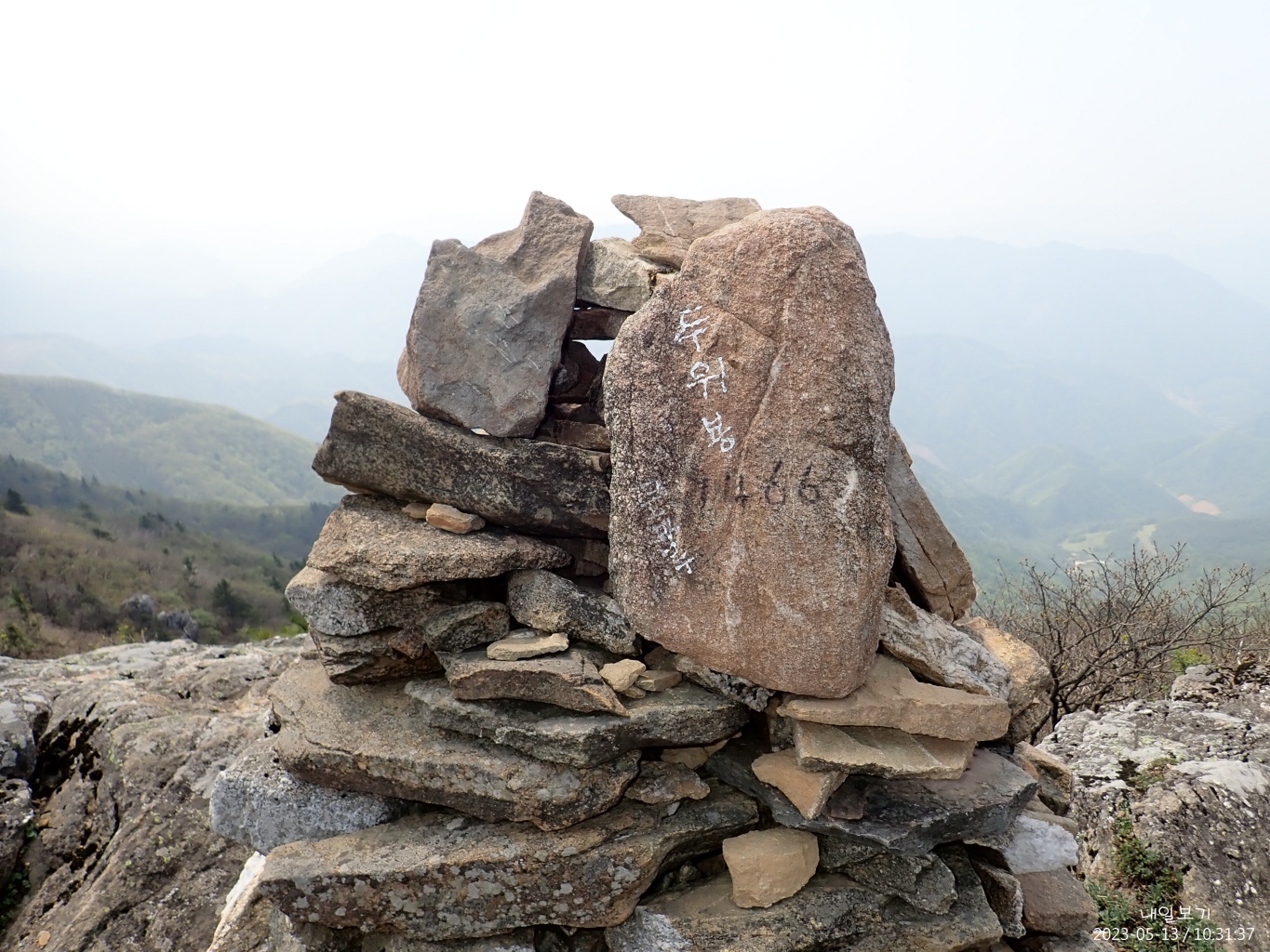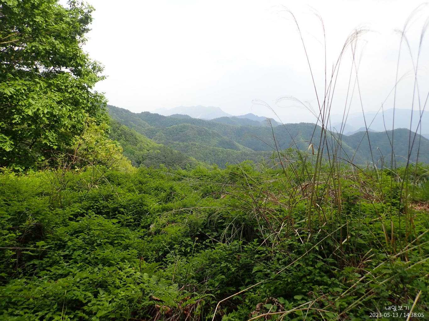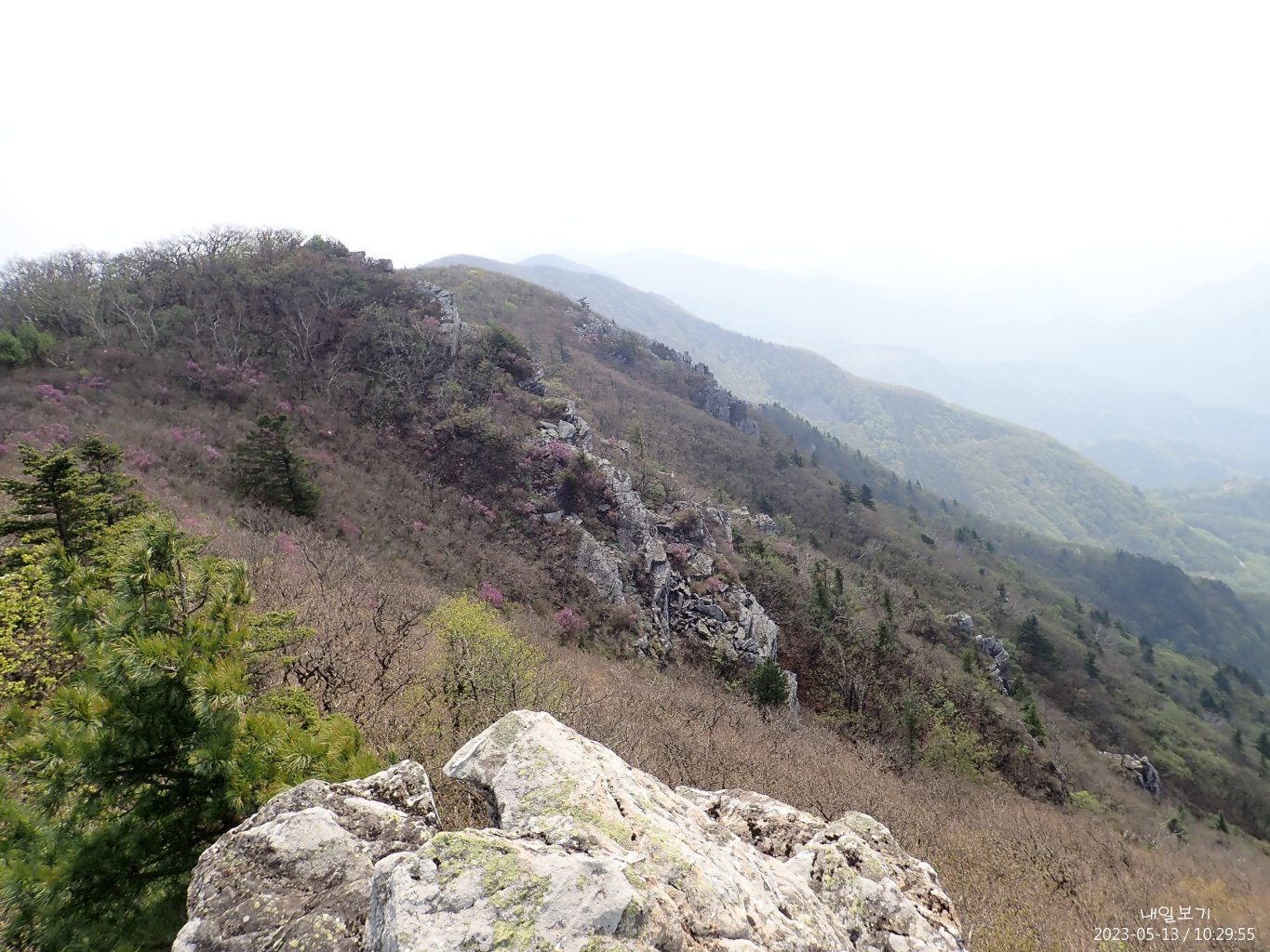 두위봉에서 동쪽. 멀리 희미한 백운산.
