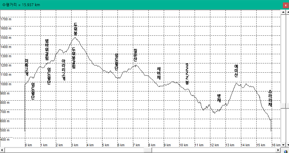 예미산 오름이 거칠다.
