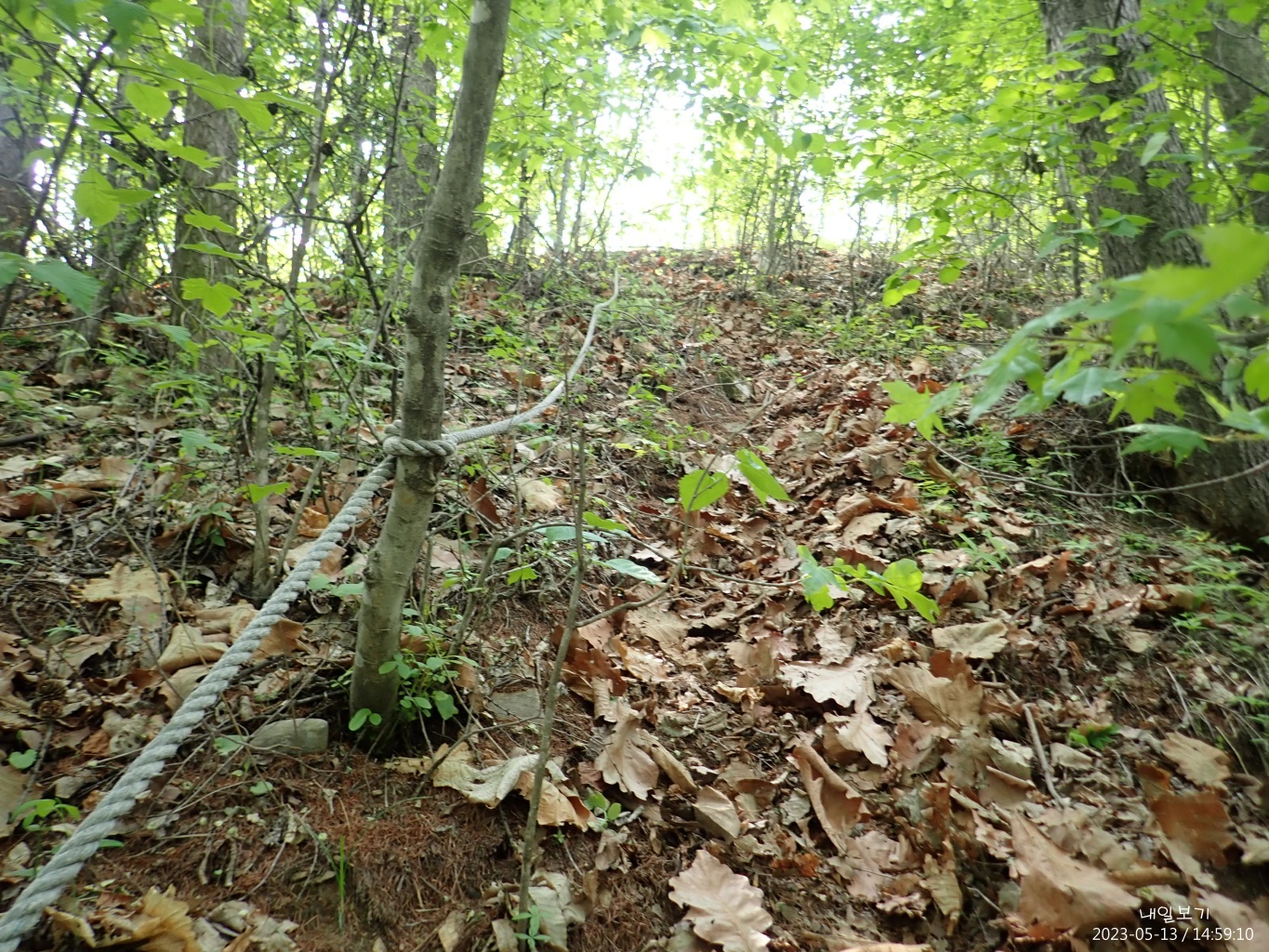 임도 사거리 만나기 직전 마루금을 버리고 오른쪽 오래된 임도로 내려왔다.