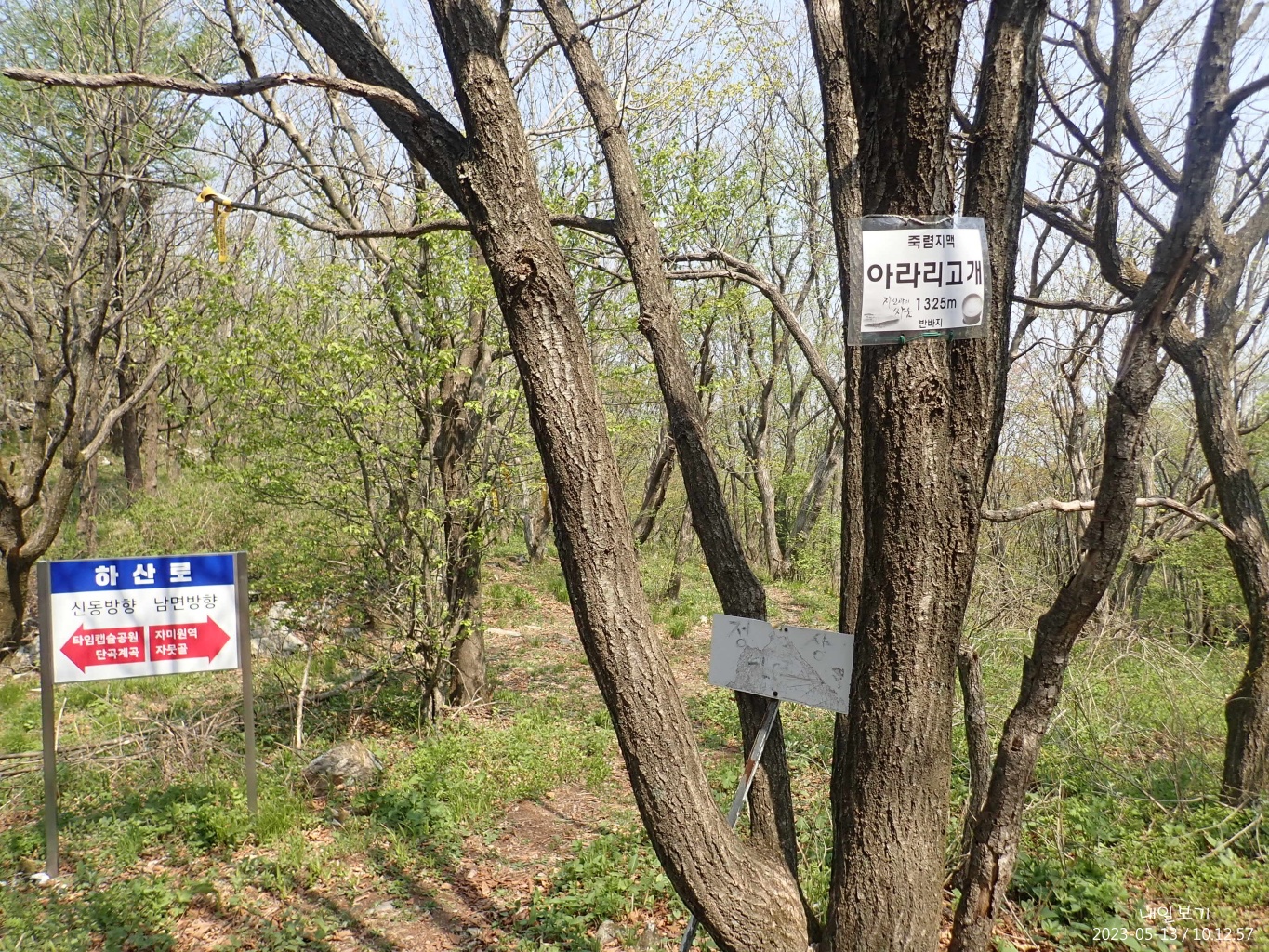 아라리 고개에서 10분 남짓 오르니 갈림길.