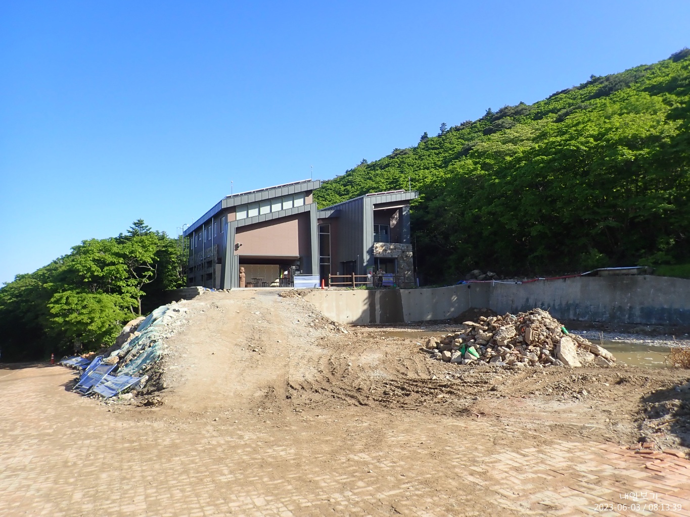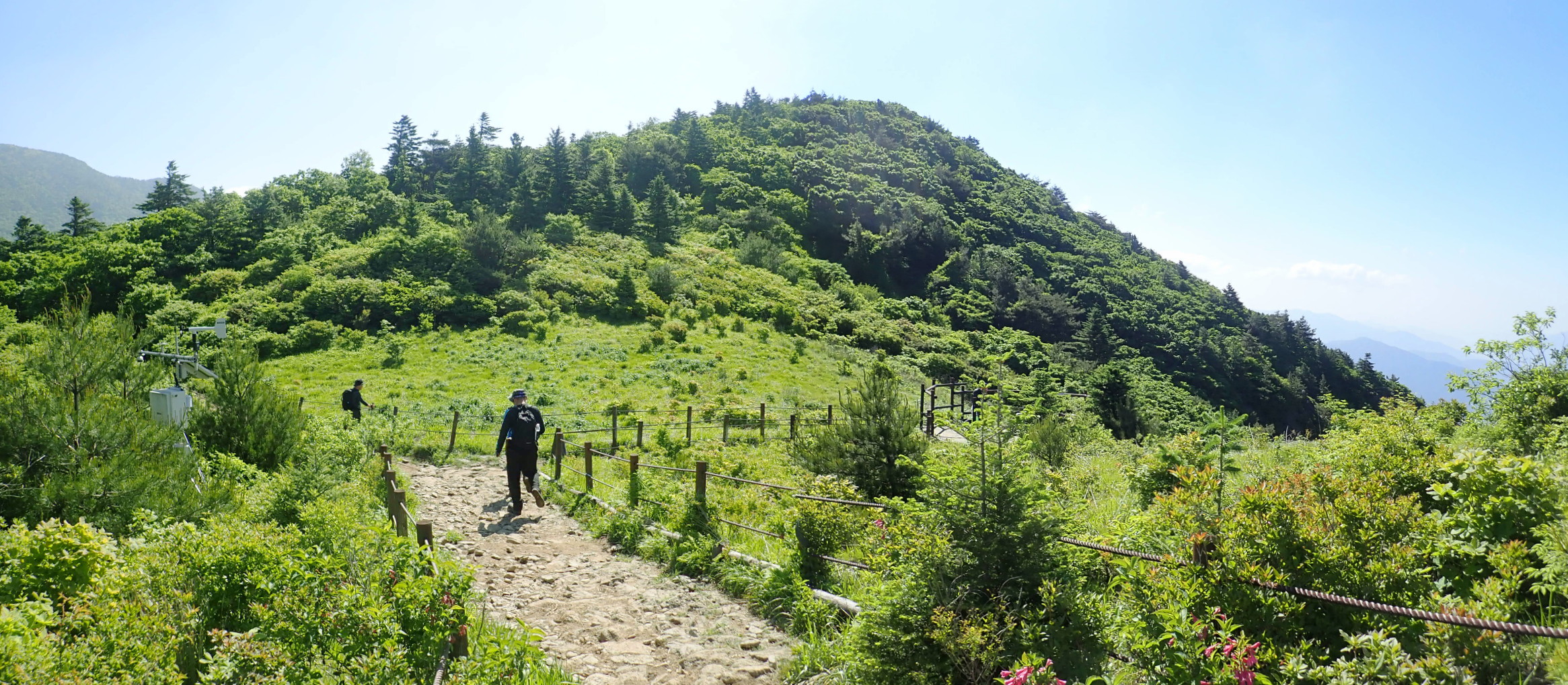 노고단대피소 공사중. 우회 오른쪽 임도로 노고단 고개까지.
