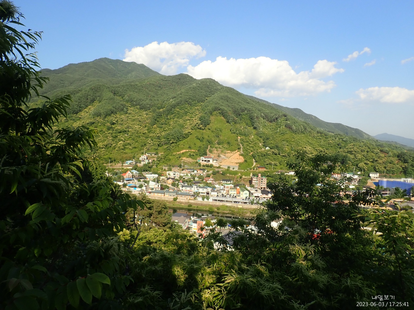 건너편 산줄기는 삼신봉에서 남서쪽으로 뻣은 청학봉-형제봉 능선.