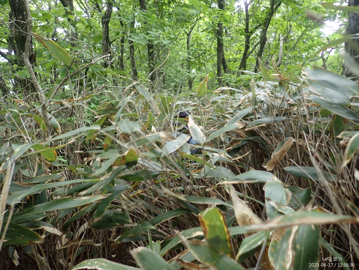 별다른 표식이 없는 왕실봉에서 잠시 쉬고 질등을 우회해 1102.2봉을 향할쯤 키보다 큰 산죽밭을 거친다.