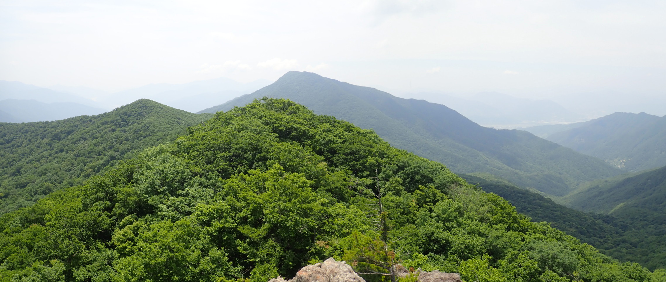 왼쪽 멀리 왕시리봉, 좌중간 형제봉,월령봉능선, 화엄사골 오른쪽 차일봉,원사봉능선.