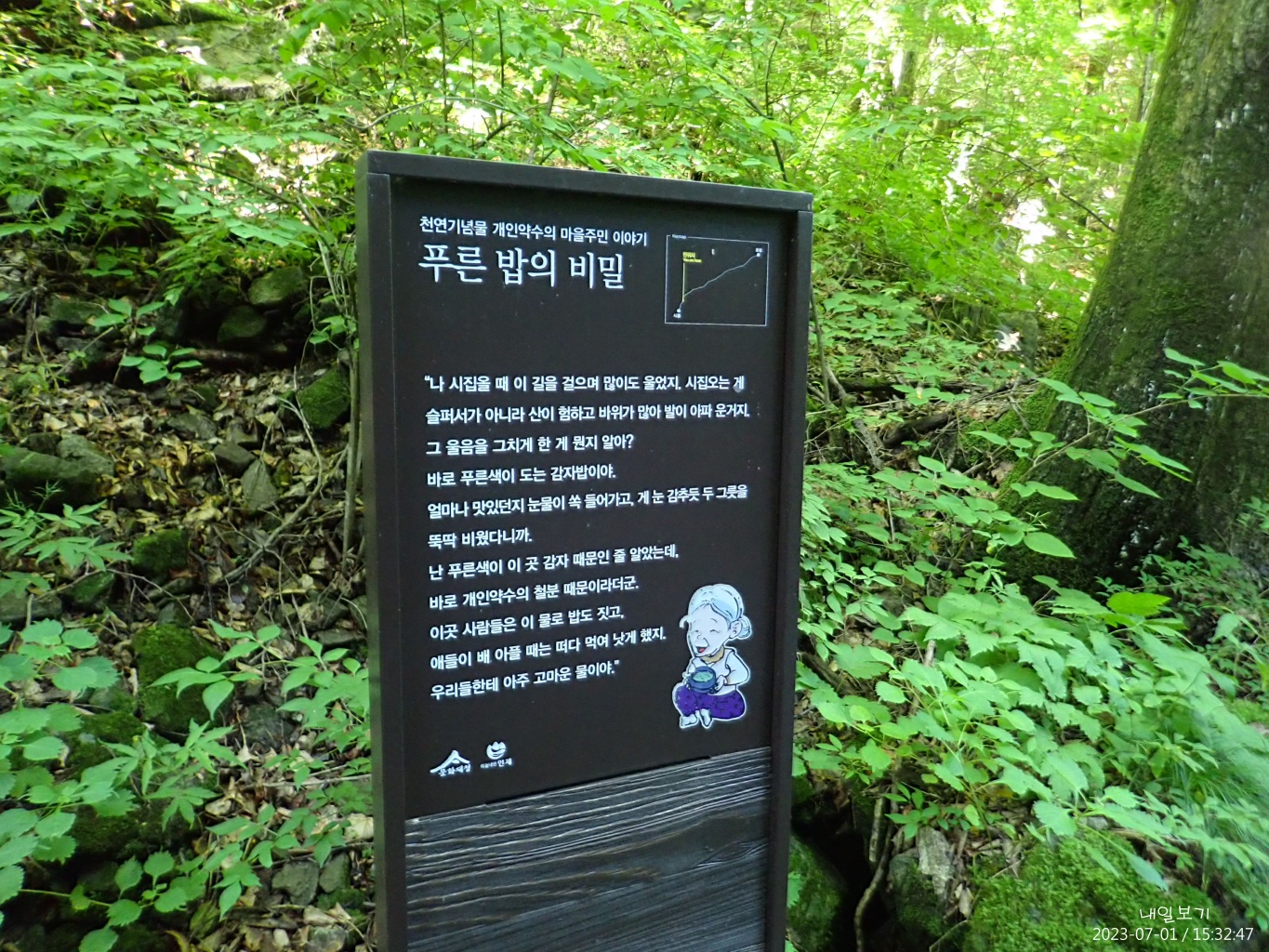 삐끗한 왼쪽 발목이 부담되서 주억봉을 포기하고 개인약수쪽으로 하산.