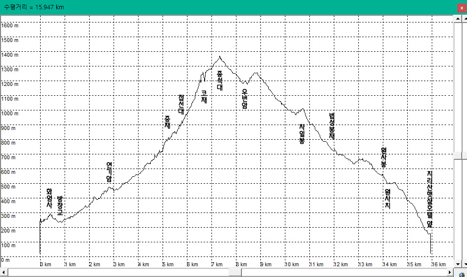 남쪽. 가운데 차일봉 능선