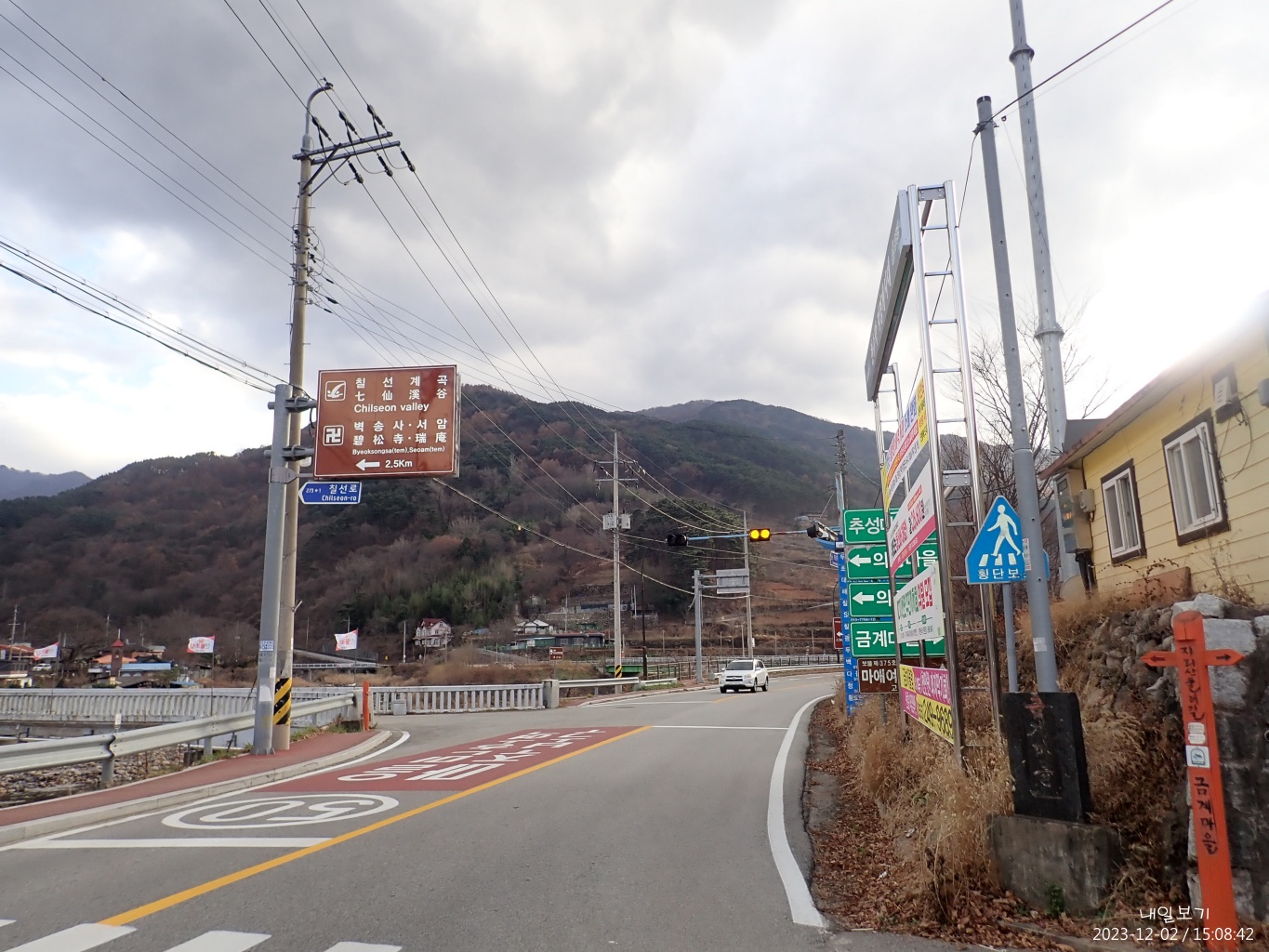 가운데 골로 올라가면 추성동. 추성동에서 오른쪽으로 오르면 칠선계곡.
