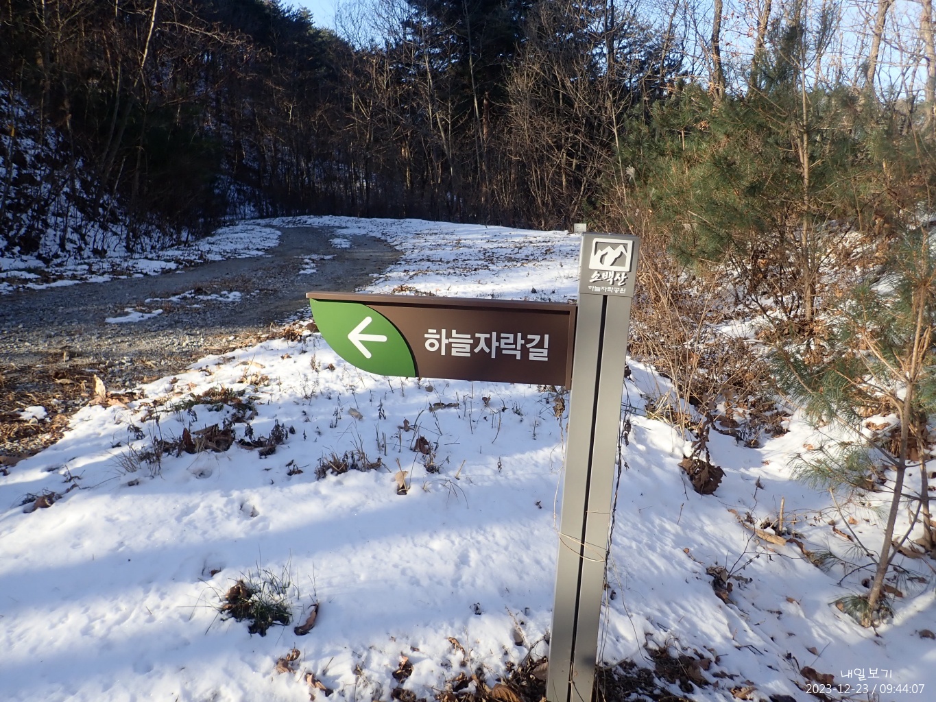 임도로 약200m쯤 올라서면 임도 갈림길.