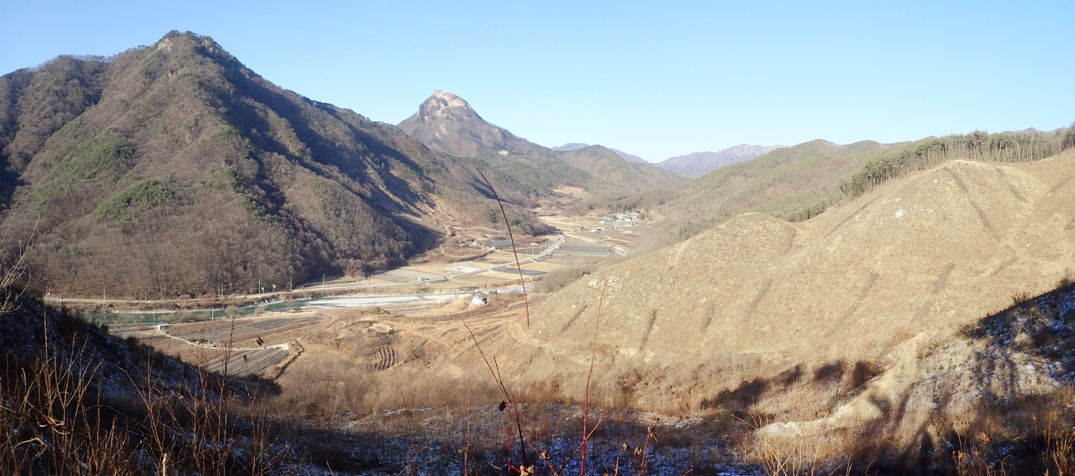 저수령 위 백두대간 갈림봉부터 이곳을 지나 남쪽 국사봉으로 흐르는 산줄기는 국사지맥.