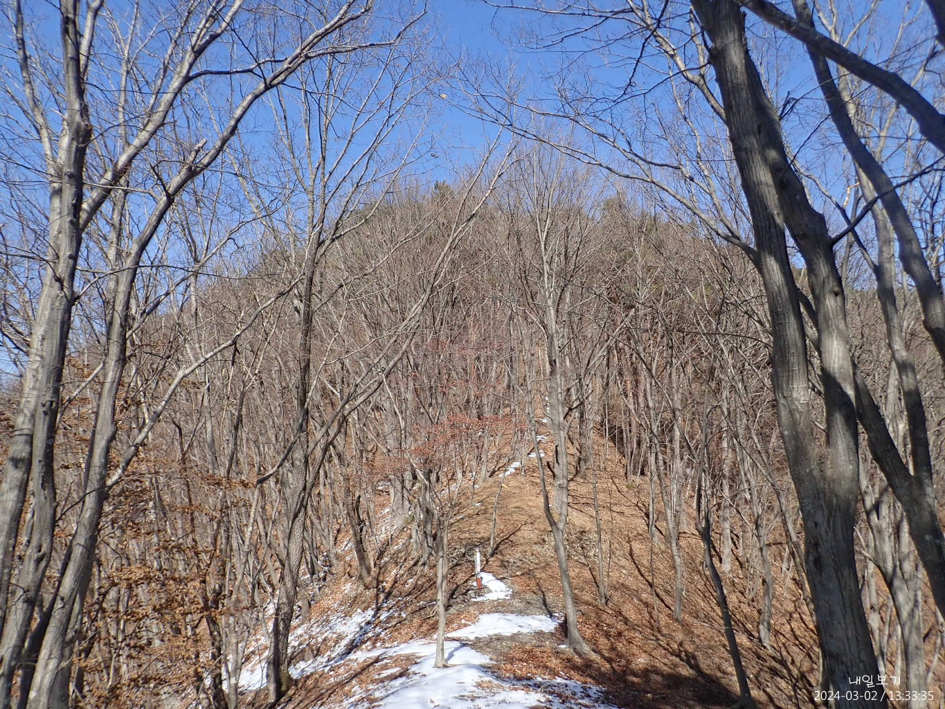 오른쪽 능선따라 진행-임도따라 가도 끝방재로 이어진다.