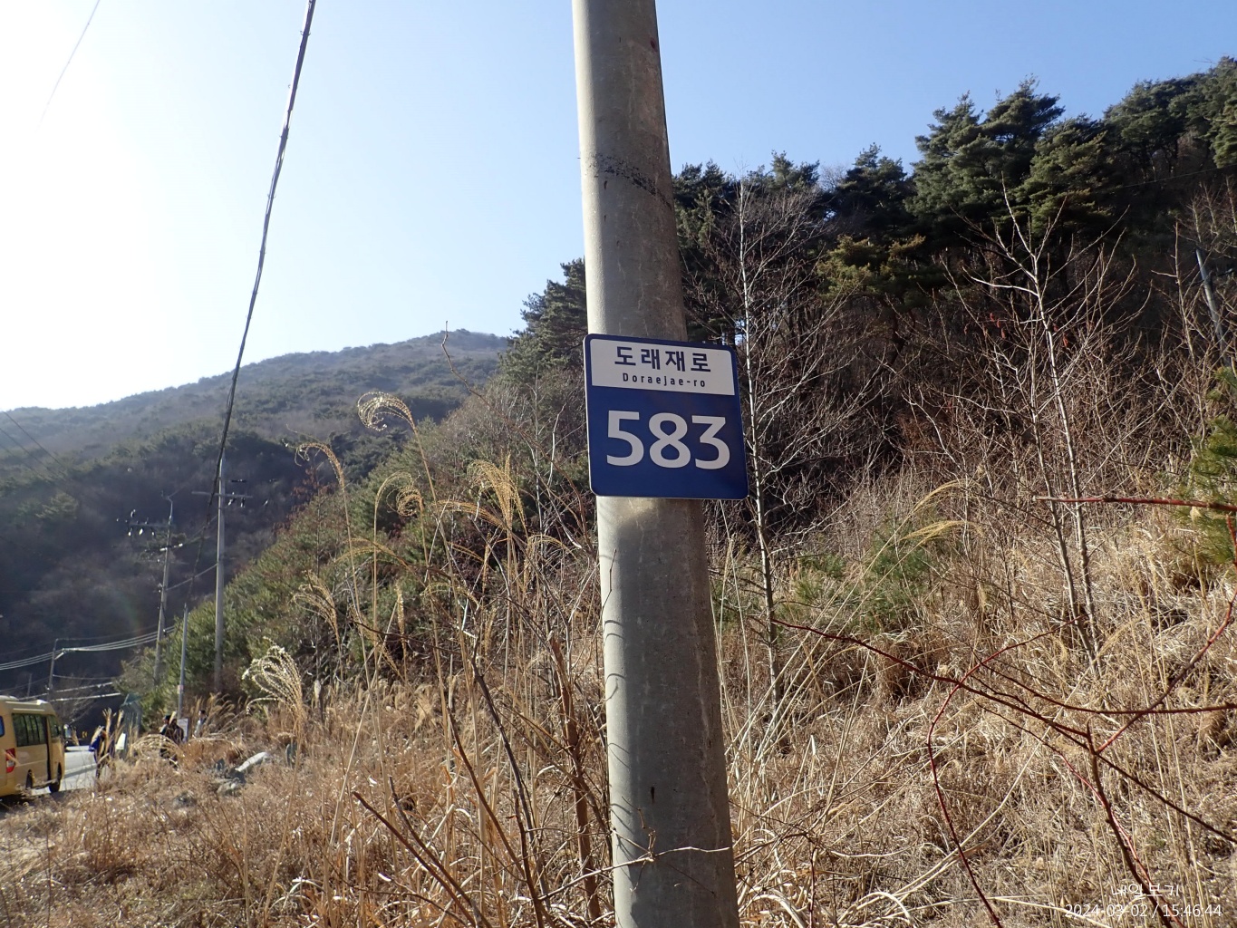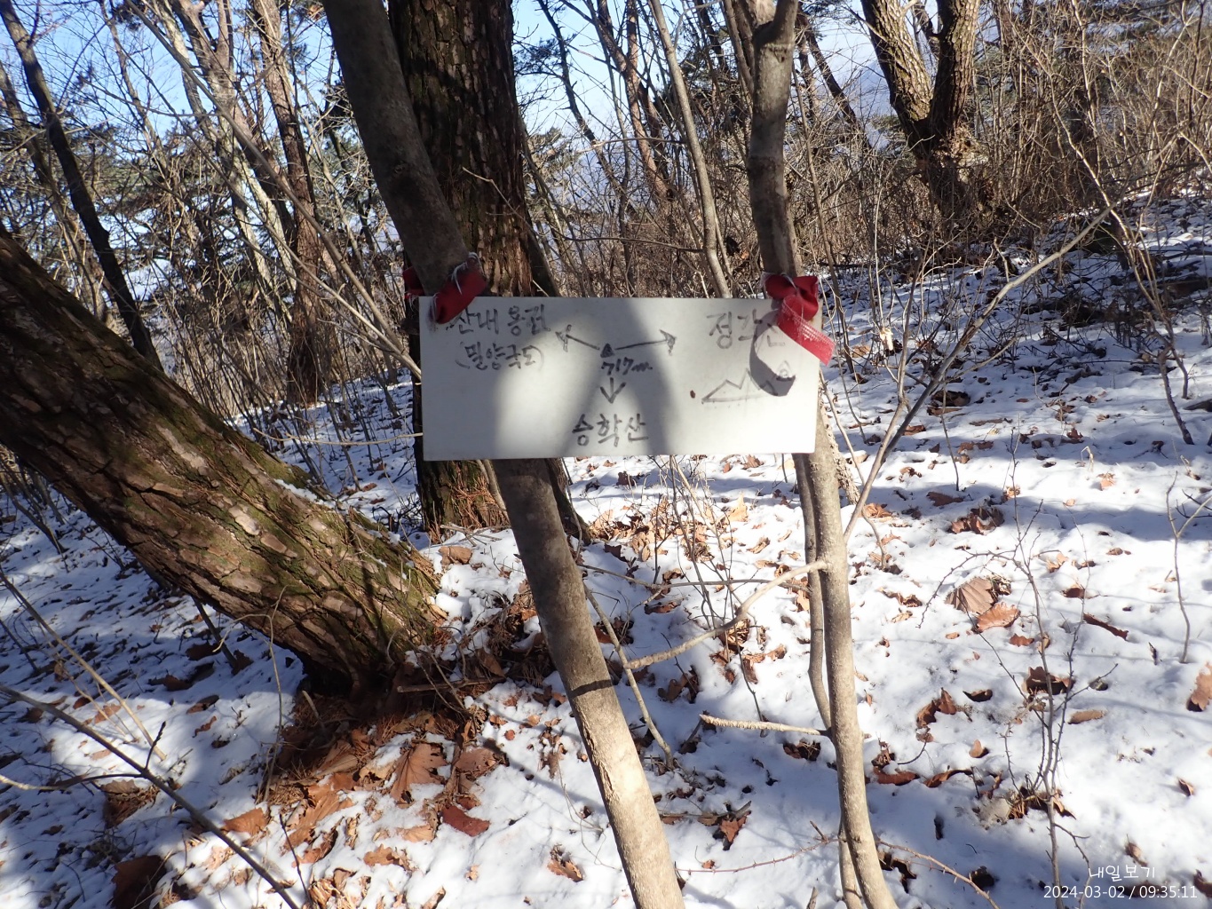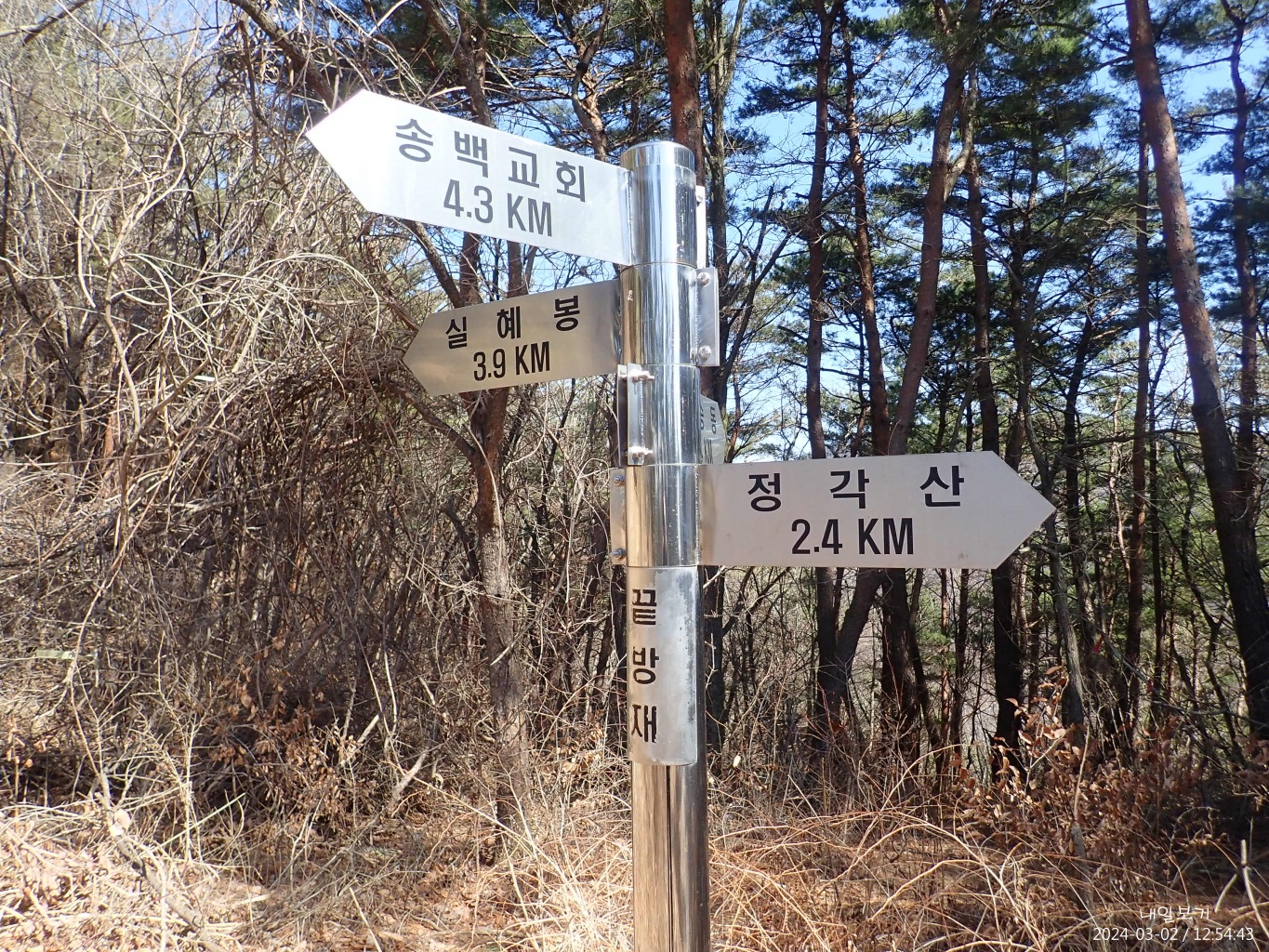 끝방재에서 임도따라 북서쪽으로 내려가면 산내면소재지 송백리.