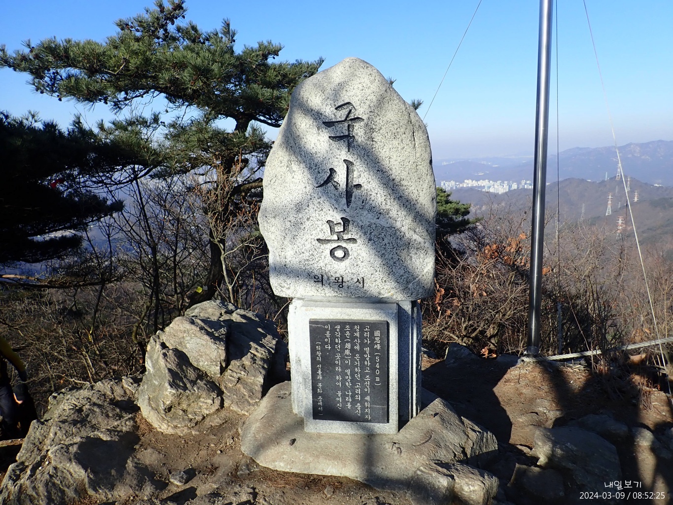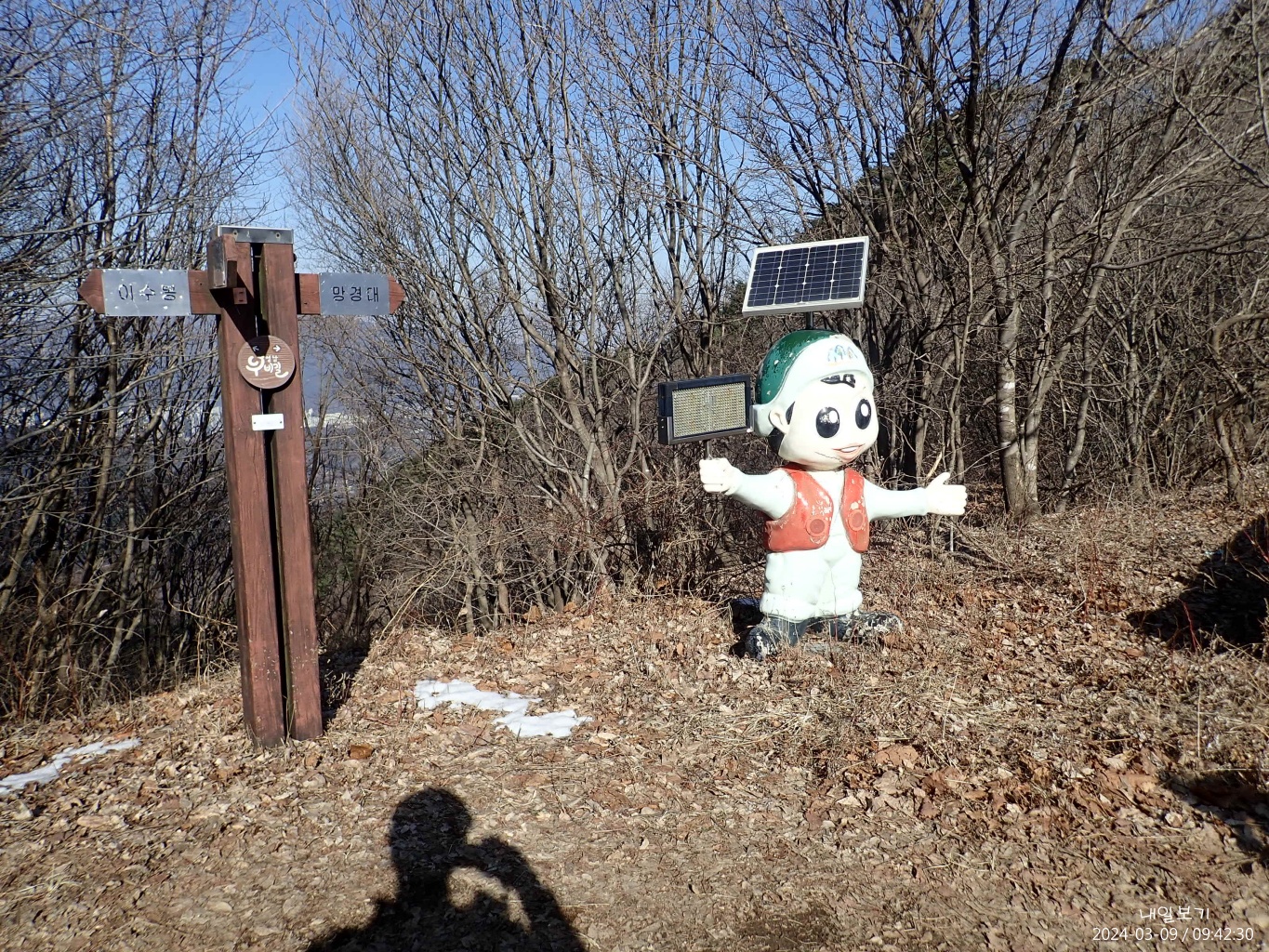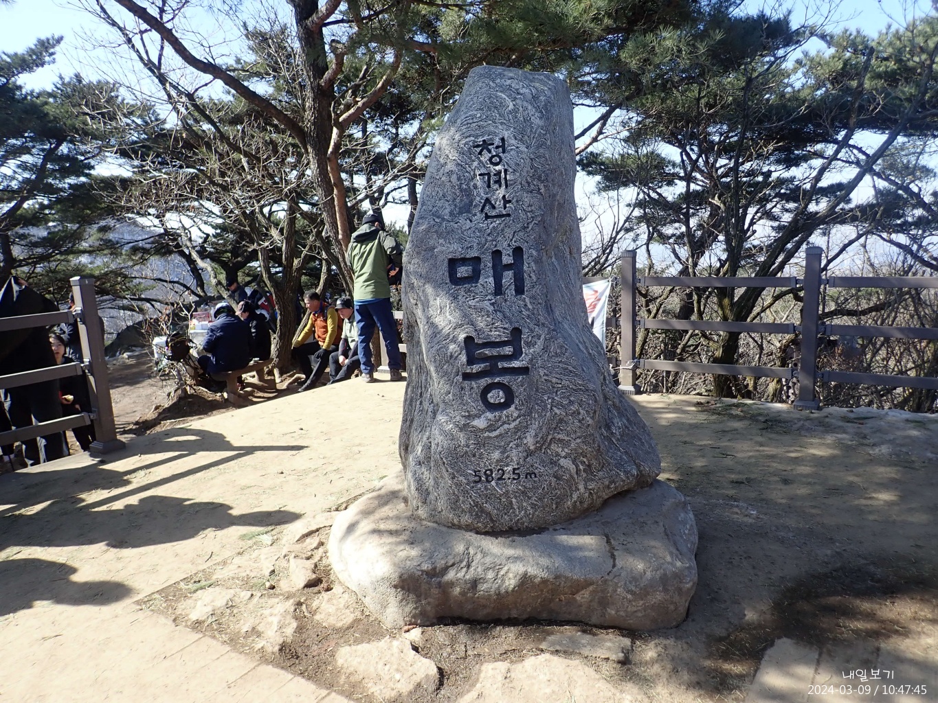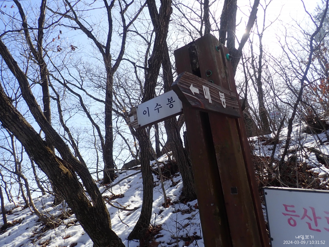이수봉 정상석은 서쪽(왼쪽)에.