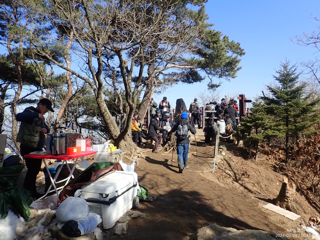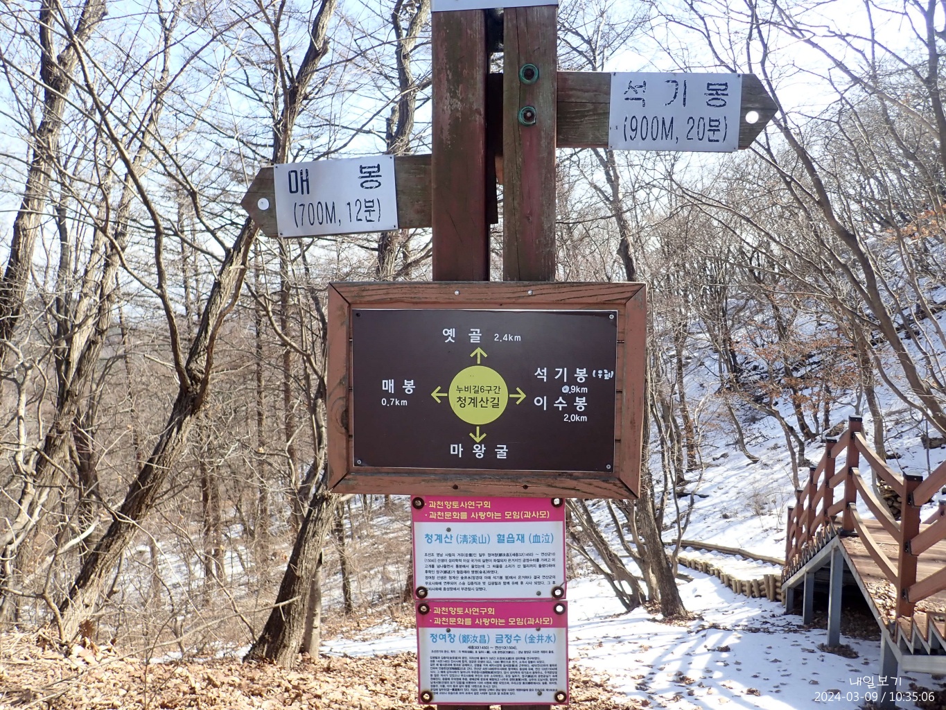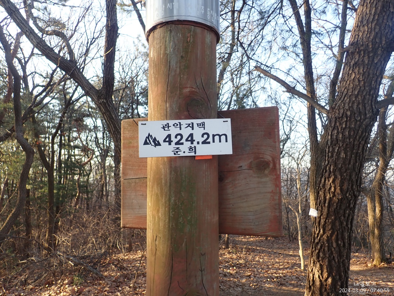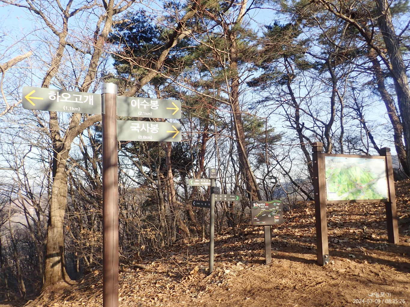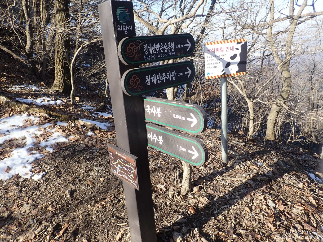이수봉 정상석은 서쪽(왼쪽)에.
