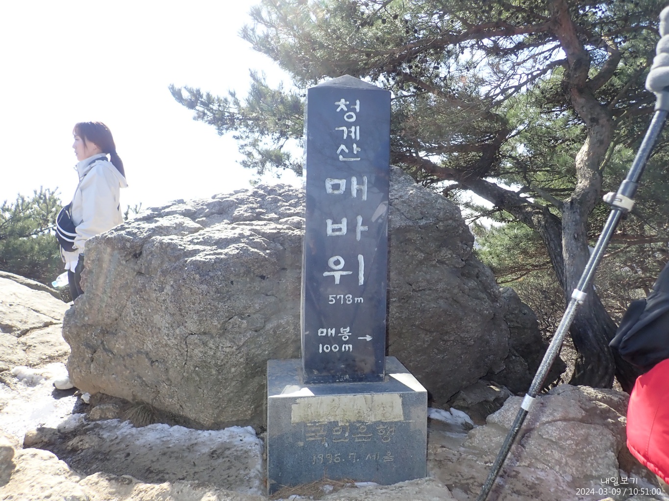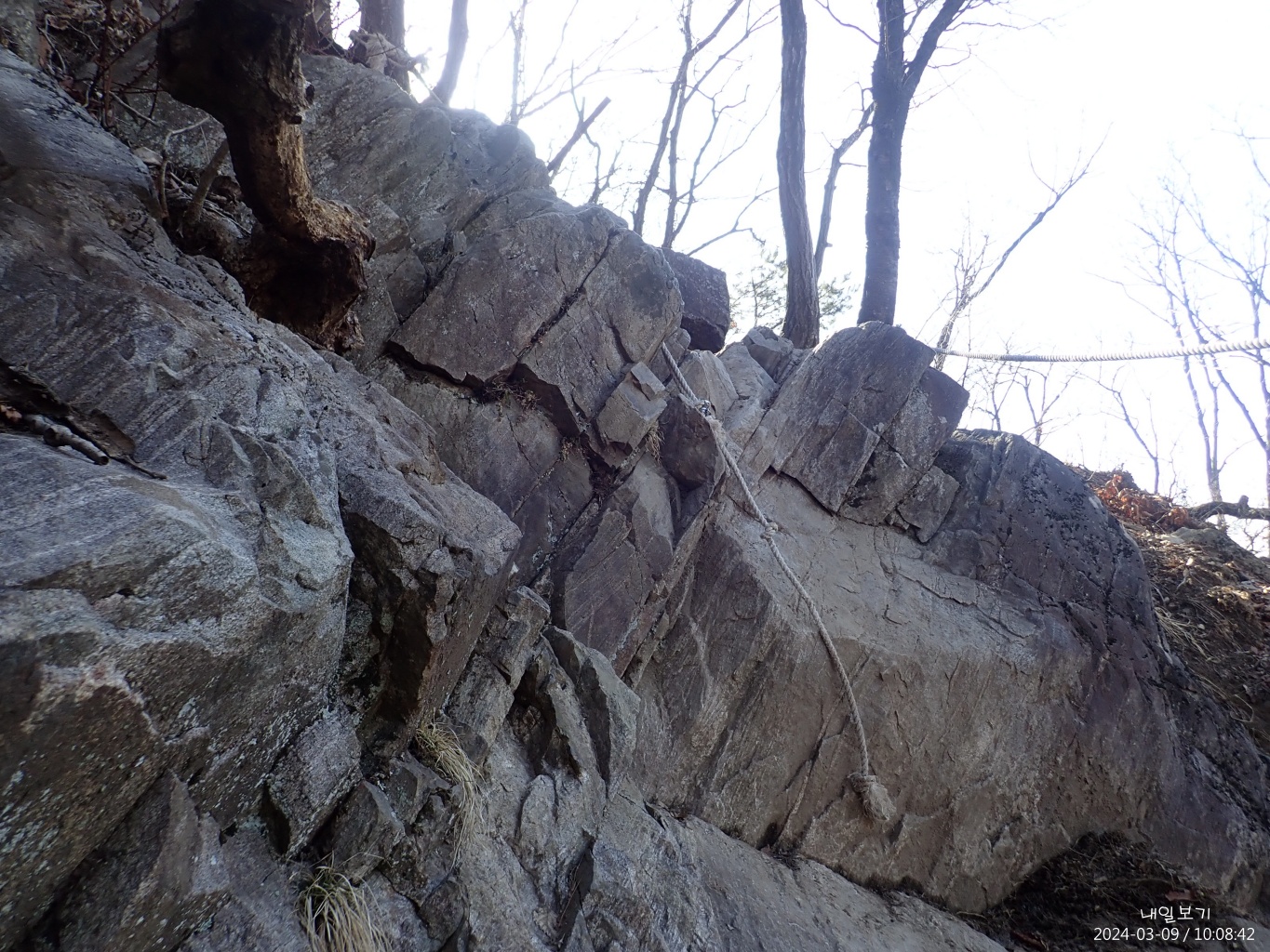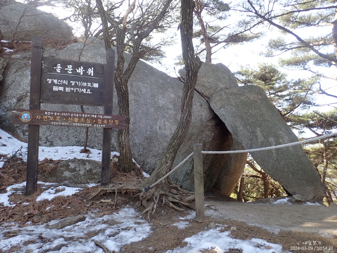 바위에 눈이 있어 조심스레.
