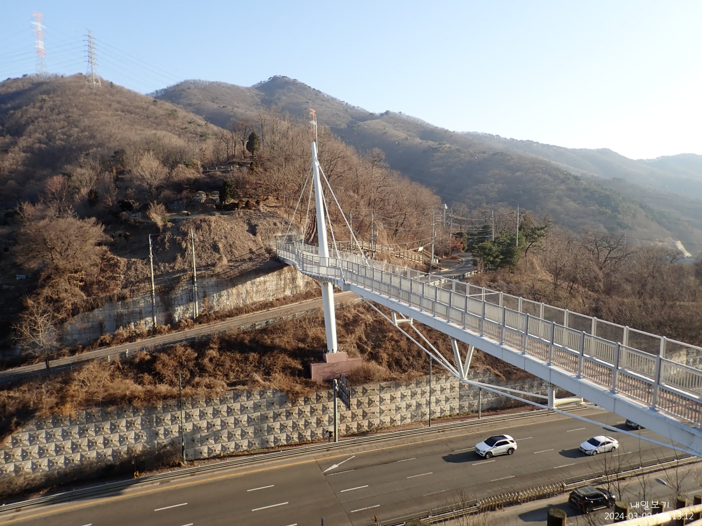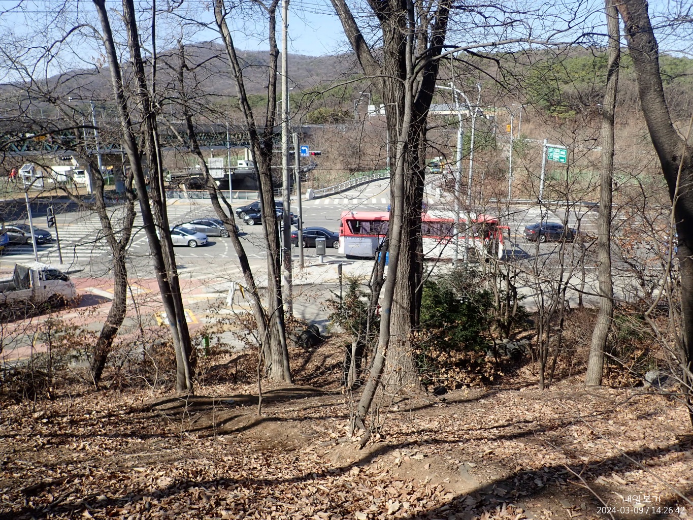 헌릉로 내려서다. 좌상단 대모산.