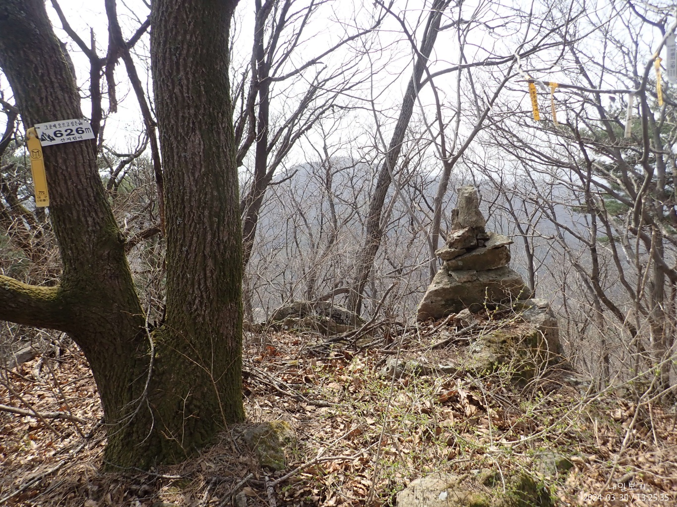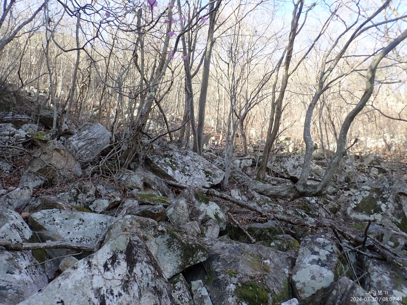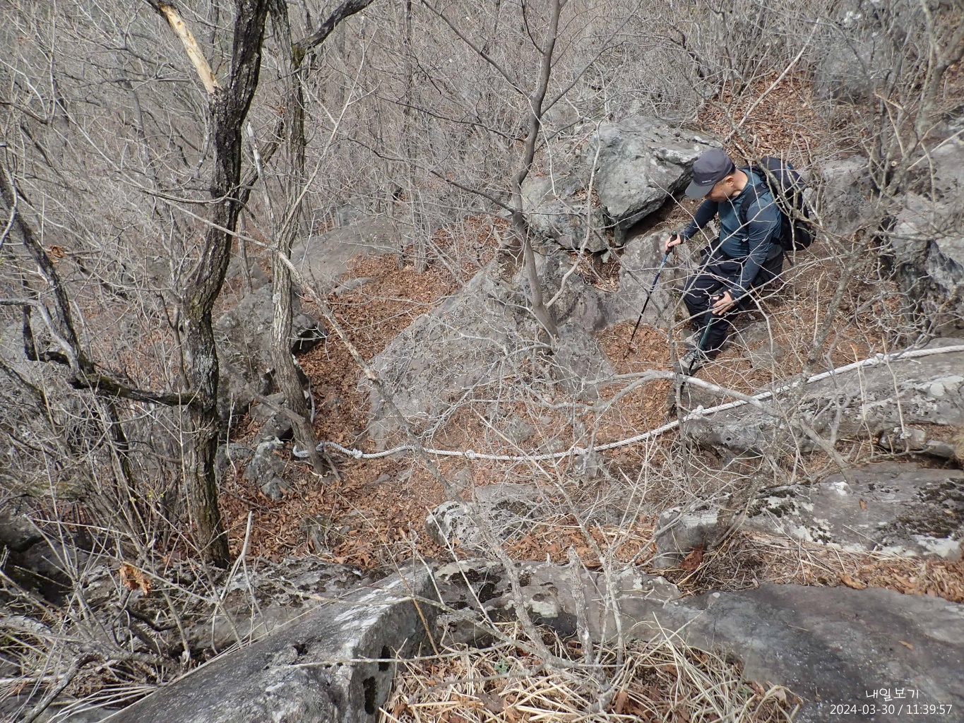 선답자의 트랙을 준비했지만 급경사에 낙엽까지 있어 길찾기 힘들어 오른쪽으로 진행하니 너덜겅이다.