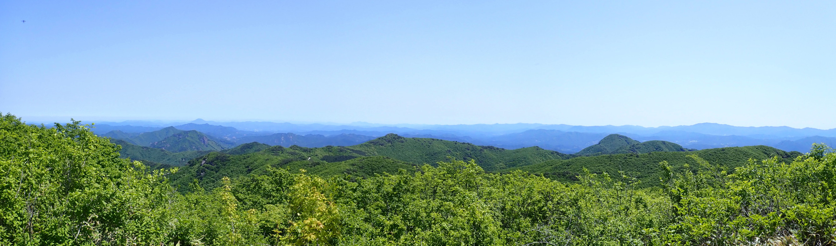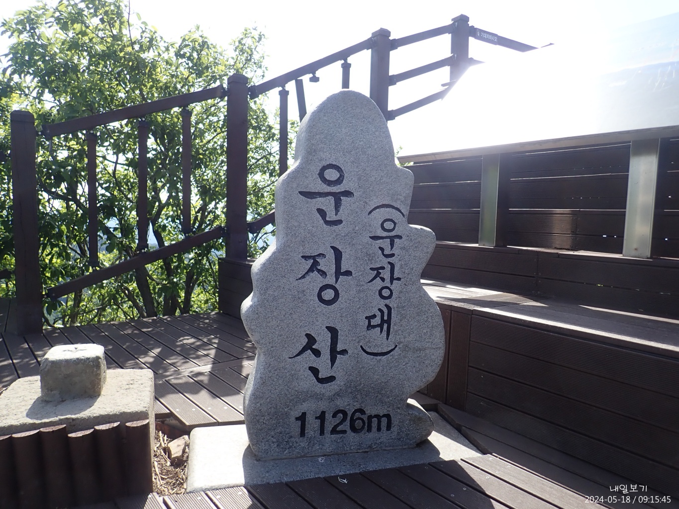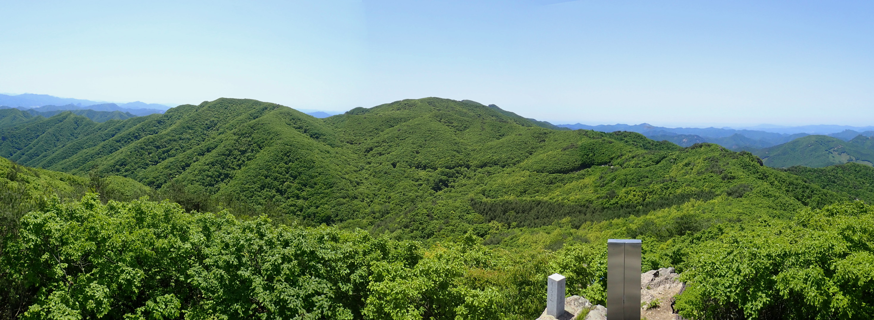 북동쪽. 왼쪽끝에 덕유산과 좌중간 멀리 서대산인 듯하고, 가운데 서봉과 그 뒤에 중봉. 오른쪽 멀리 덕유산.