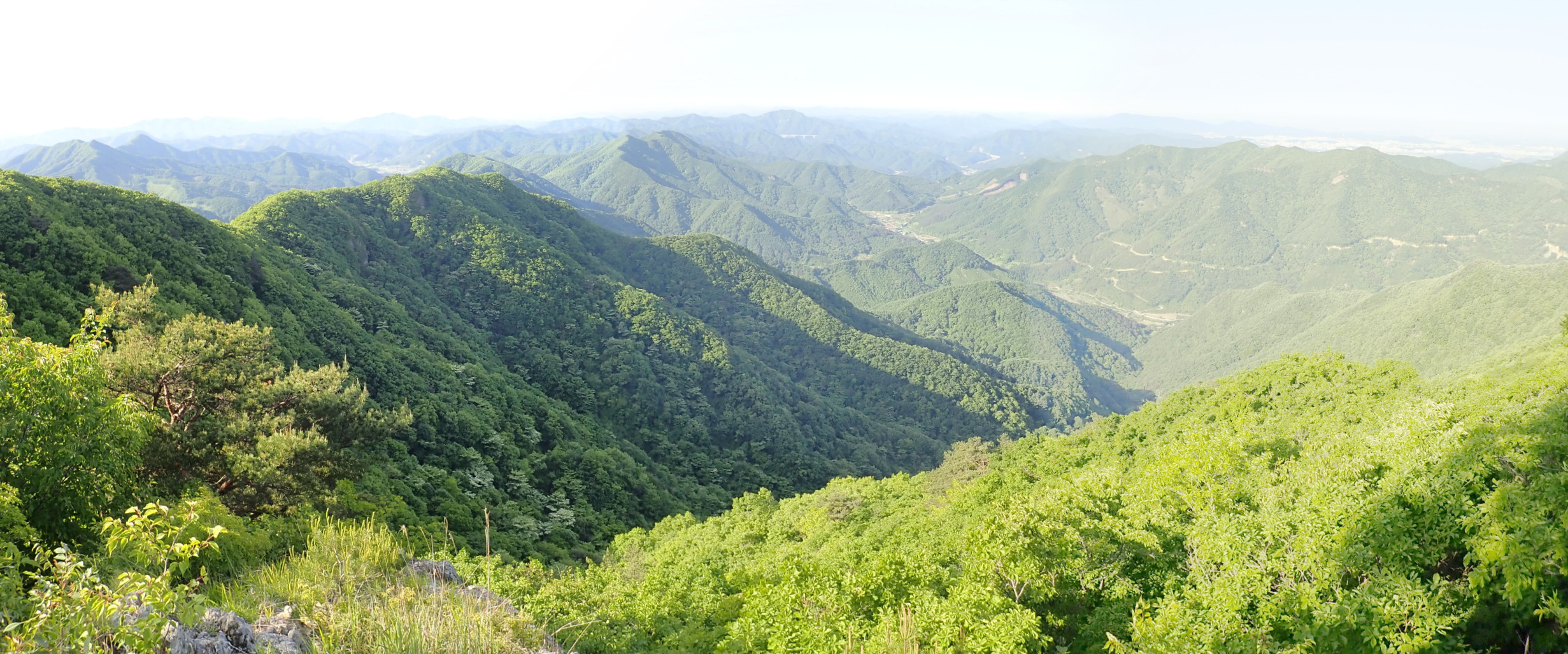 좌중간 멀리 덕유산-가운데 명덕봉-우중간 옥녀봉과 오른쪽 멀리 지리산