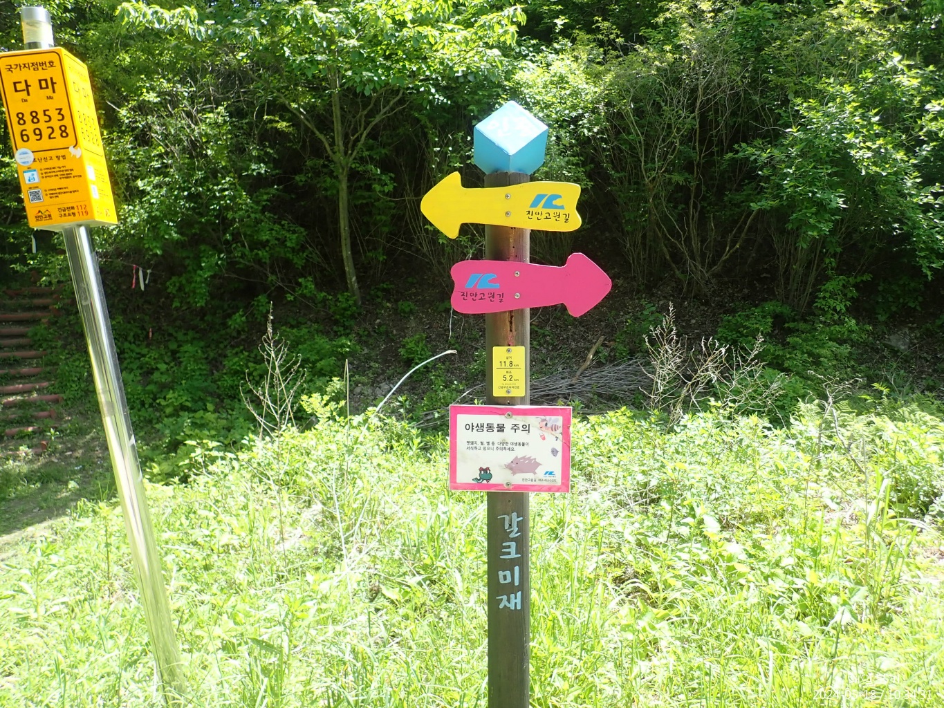 임도 오른쪽으로 내려가면 갈거계곡 운장산 자연휴양림