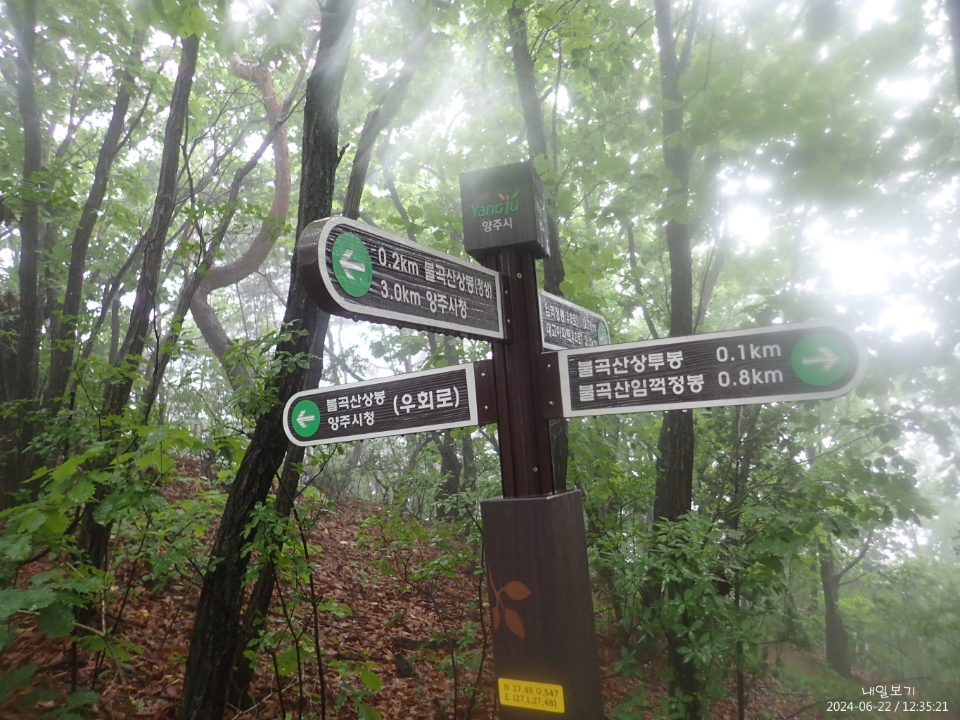 내려가면 오산삼거리. 건너편 임꺽정봉과 불곡산.