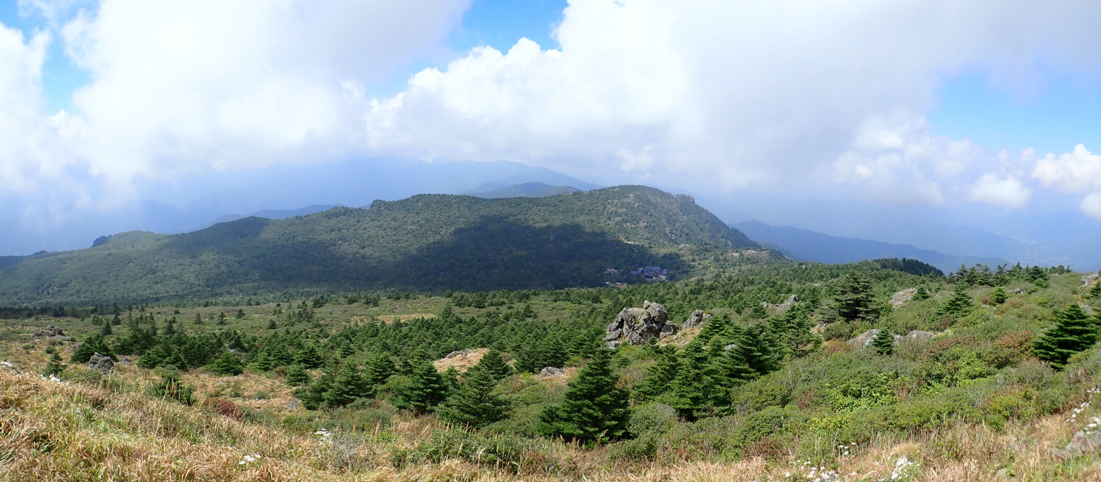 가운데 영신봉과 세석대피소 오른쪽 촛대봉.