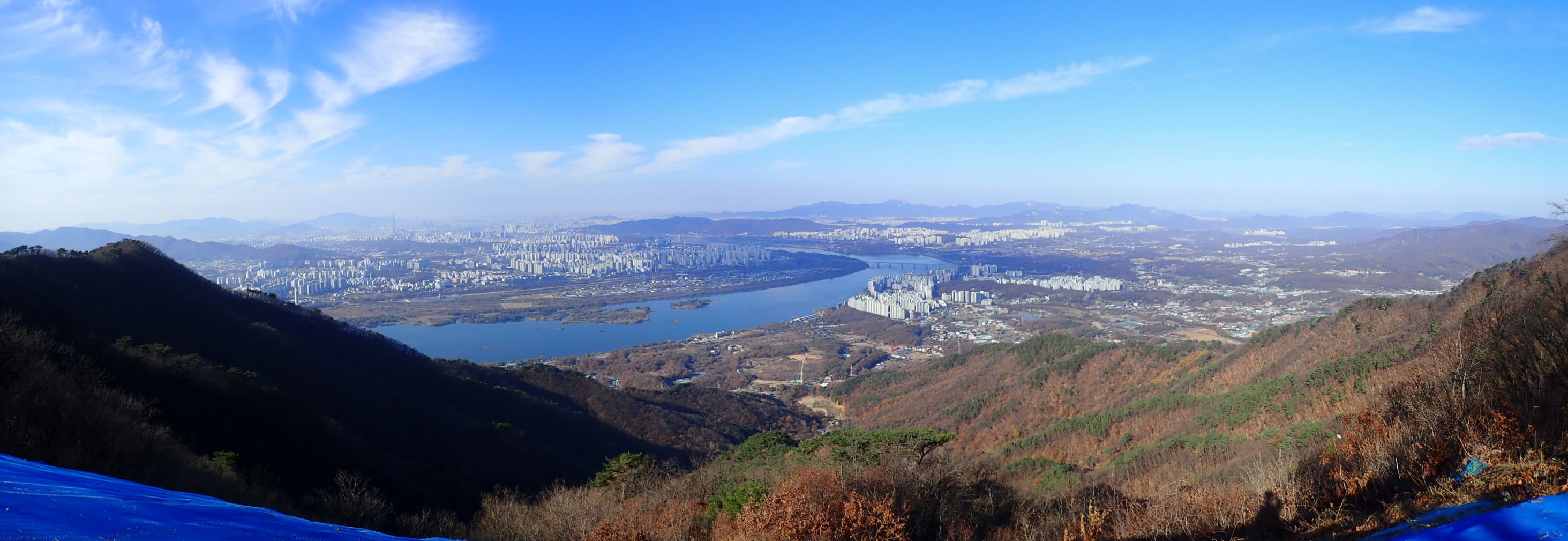 적갑산과 635.9봉 중간쯤 활공장에서 서쪽. 우중간 멀리 북한산과 도봉산능선. 한강 왼쪽(남쪽)에 하남시 미사동 일원과 가운데 미사대교 오른쪽(북쪽) 남양주 와부읍 일원.