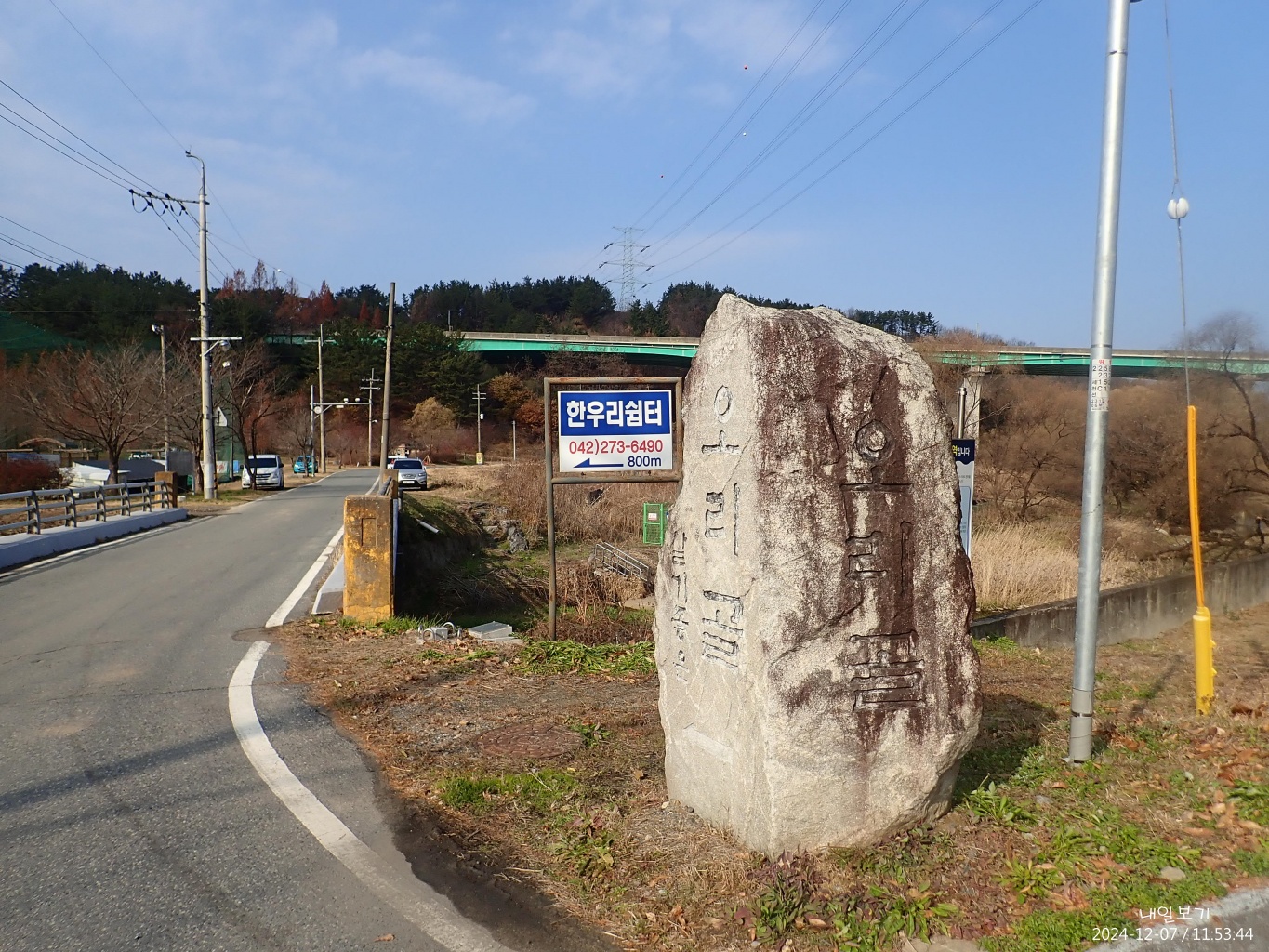 다리 건너편 옥천과 세천을 잇는 도로.