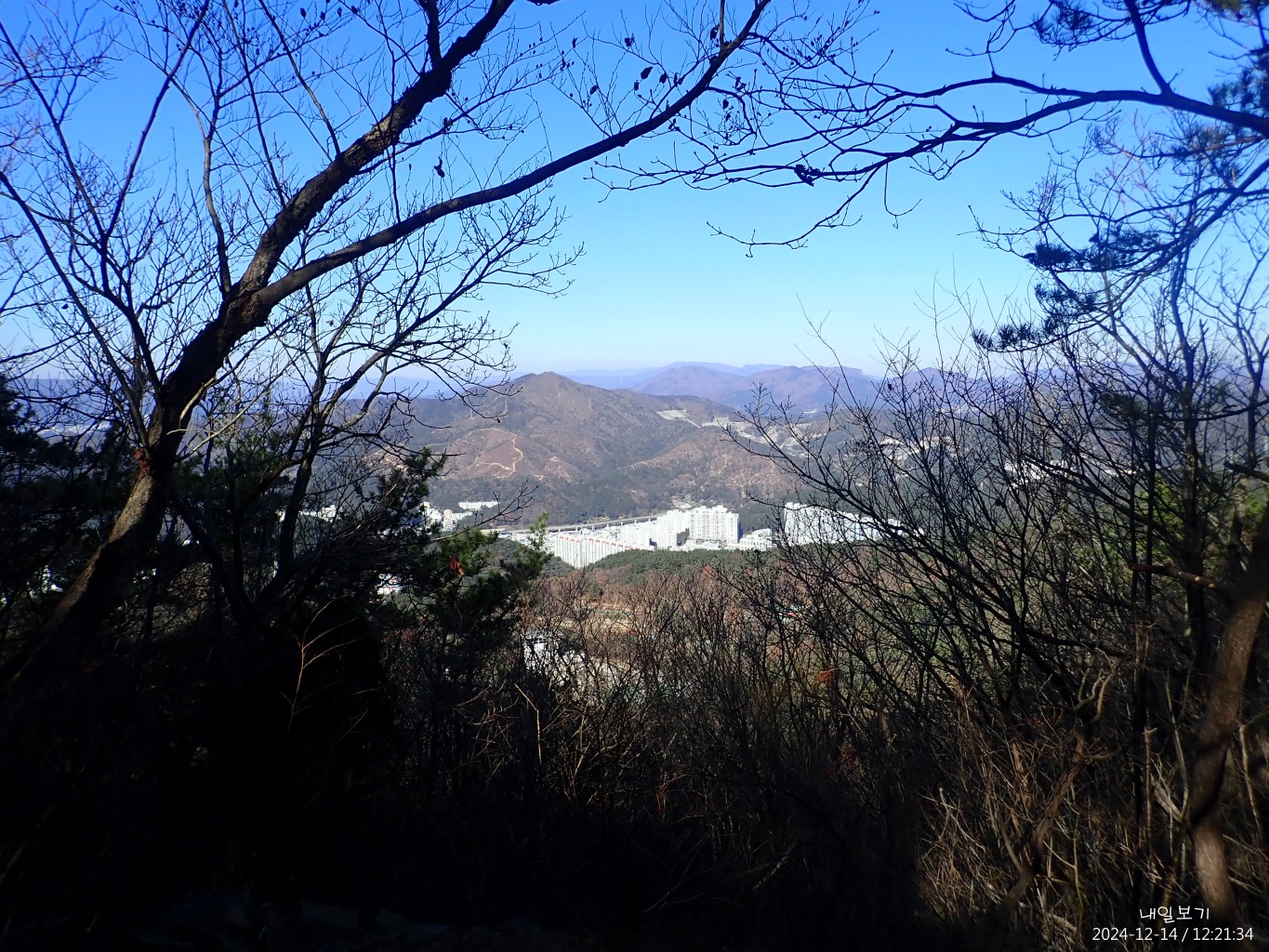 약수터 아래 쉼터에서 북서쪽. 운봉산과 반송동 도심.
