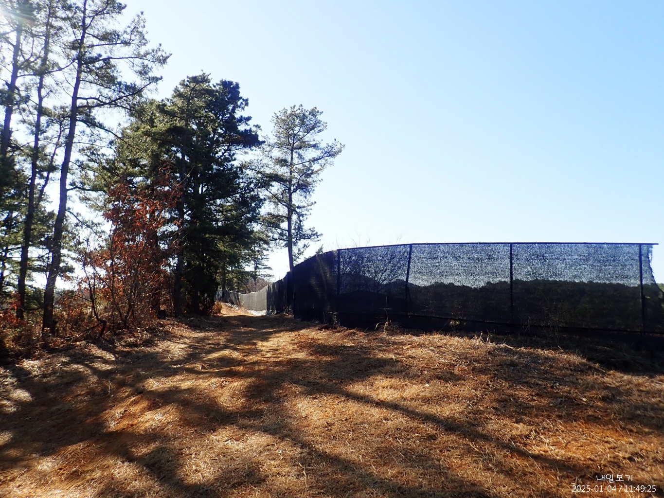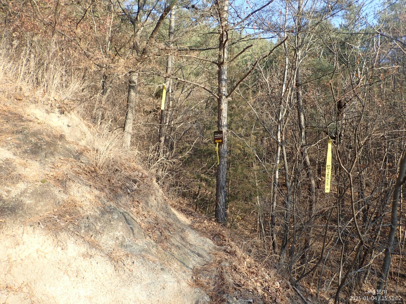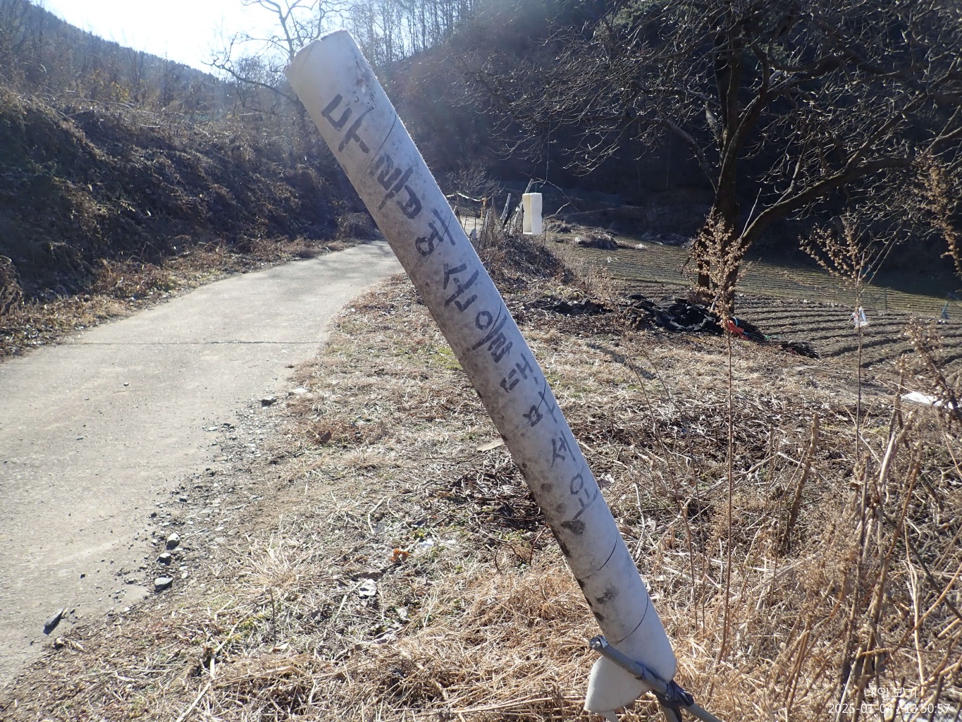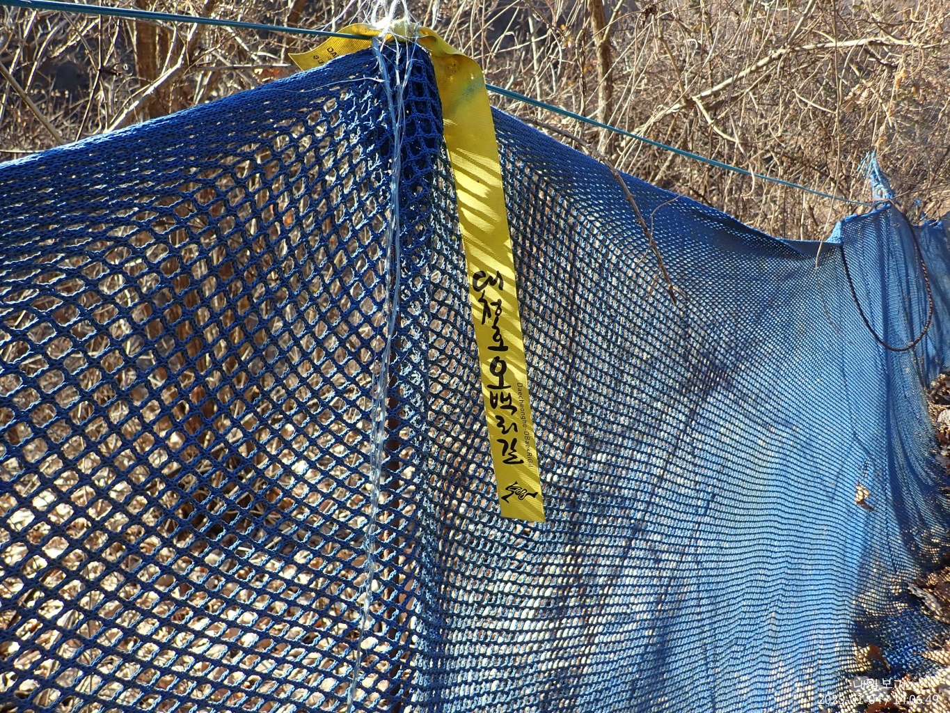 오른쪽 소나무쪽으로 들어갔다 왼쪽 검정가림막쪽으로 나왔다. 오른쪽 소나무 아래가 위 오백리길푯말이 박혀있는 곳.