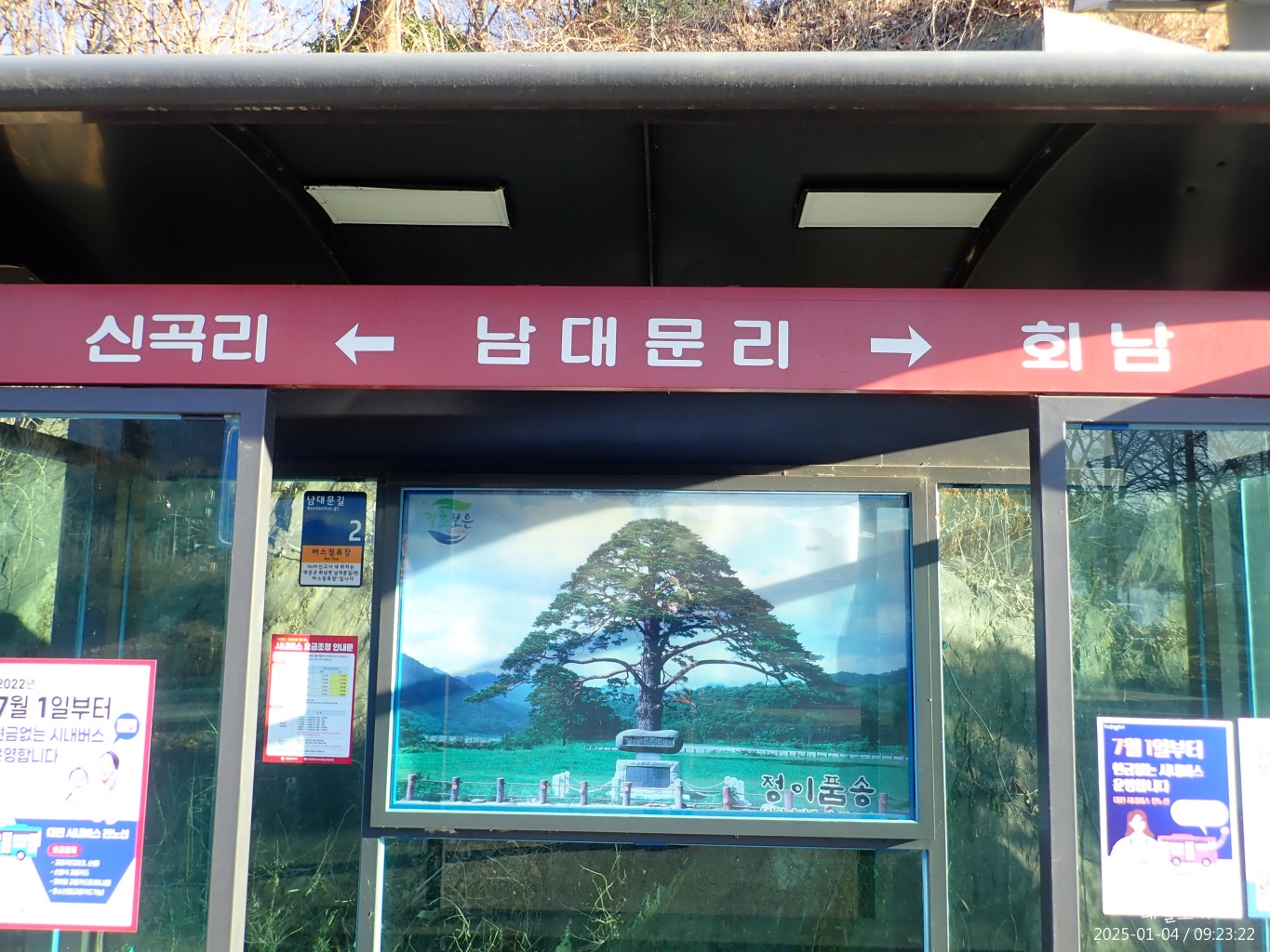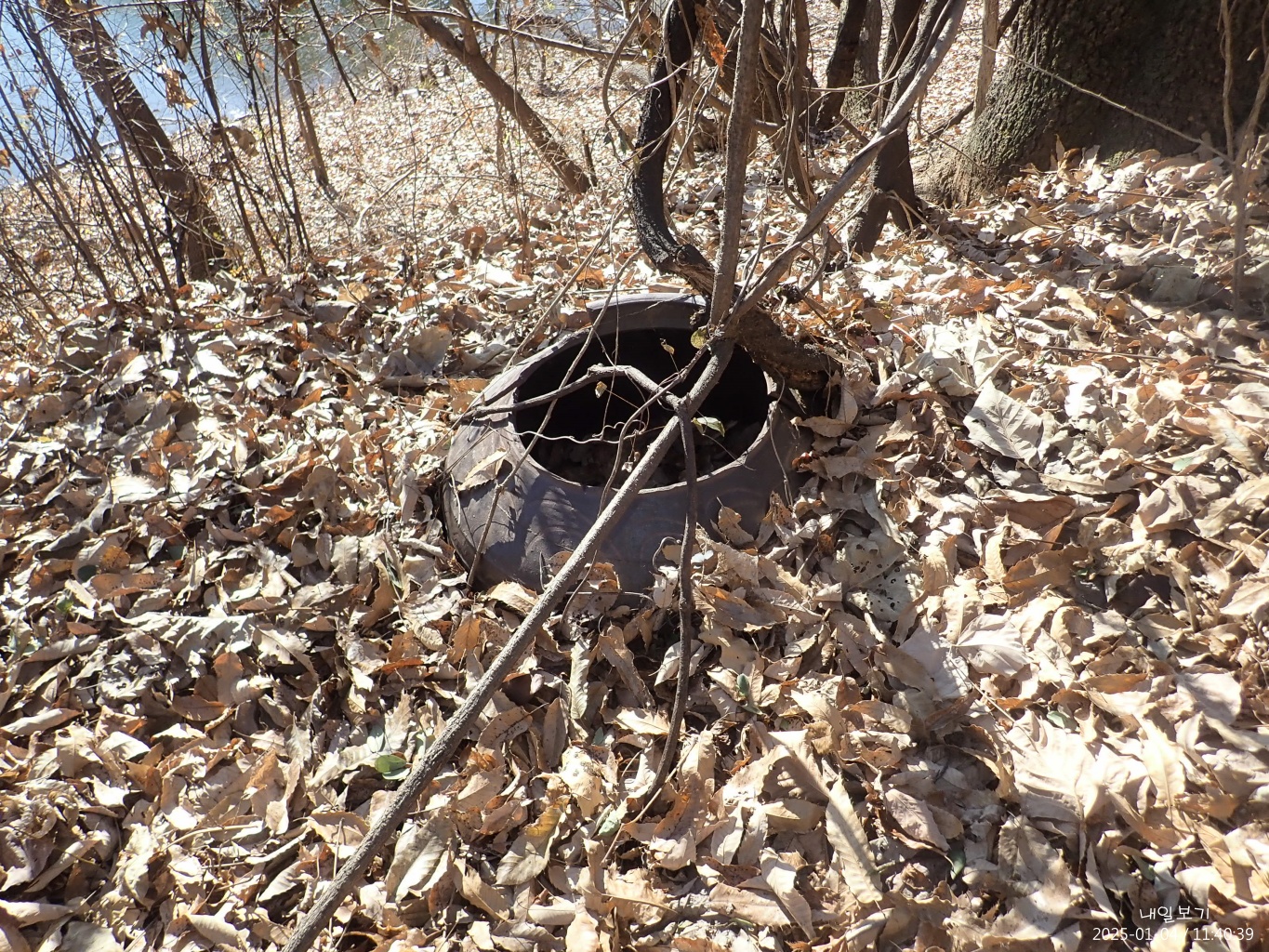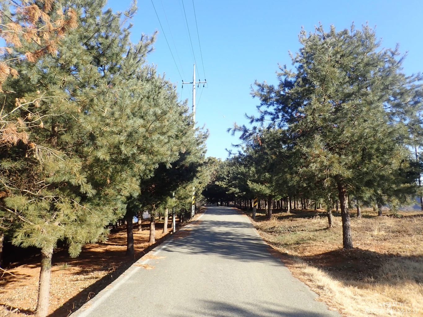 오른쪽 소나무쪽으로 들어갔다 왼쪽 검정가림막쪽으로 나왔다. 오른쪽 소나무 아래가 위 오백리길푯말이 박혀있는 곳.