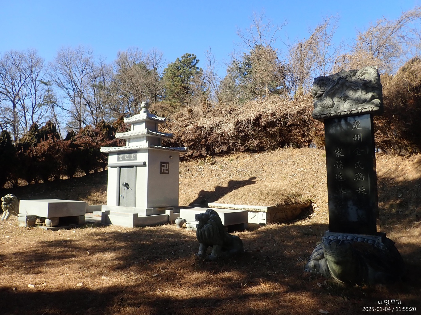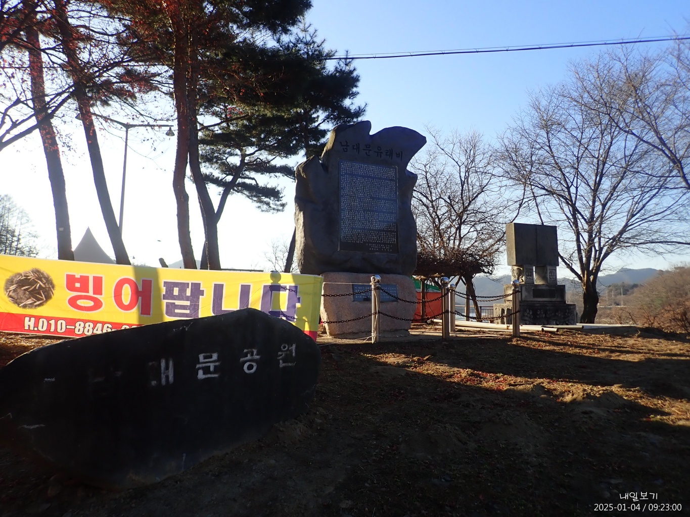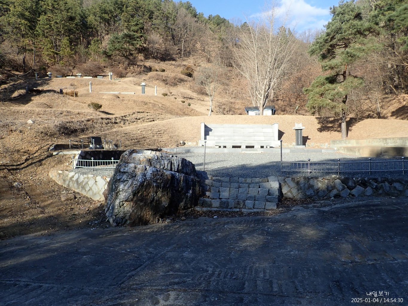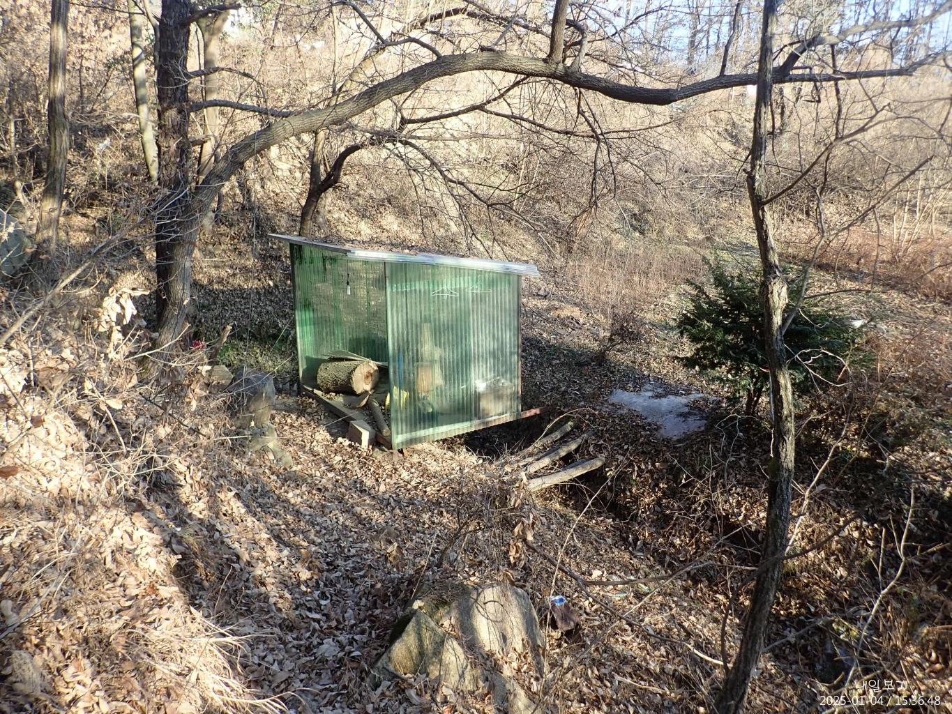오른쪽 소나무쪽으로 들어갔다 왼쪽 검정가림막쪽으로 나왔다. 오른쪽 소나무 아래가 위 오백리길푯말이 박혀있는 곳.