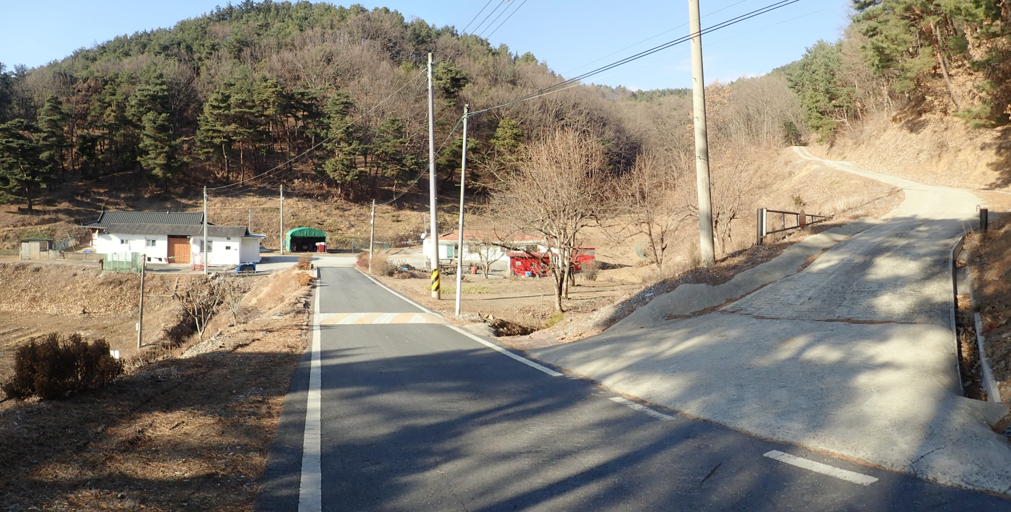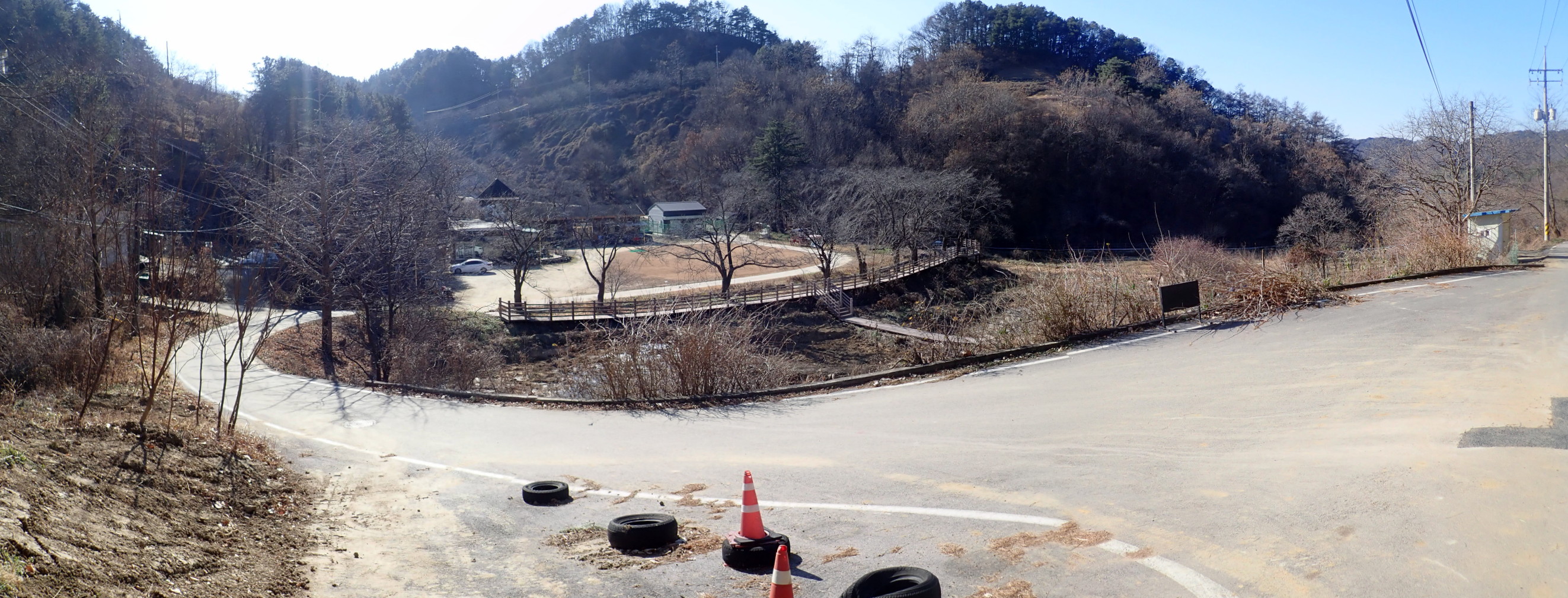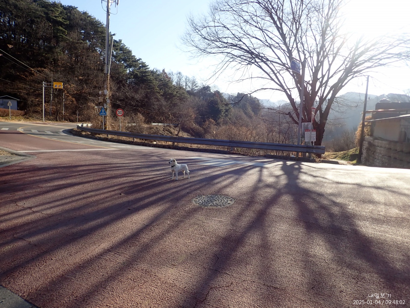 분저리 버스정류장 안쪽. 오른쪽 집에 왈왈이.