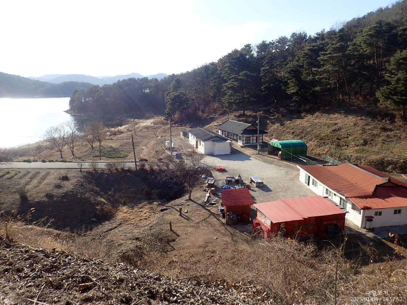 오른쪽에서 내려와 대청호반쪽으로 갔다. 그러나 연꼭마을 끝자락에서 대청호 수위가 높아 길이 잠겨 되돌아 나왔다.