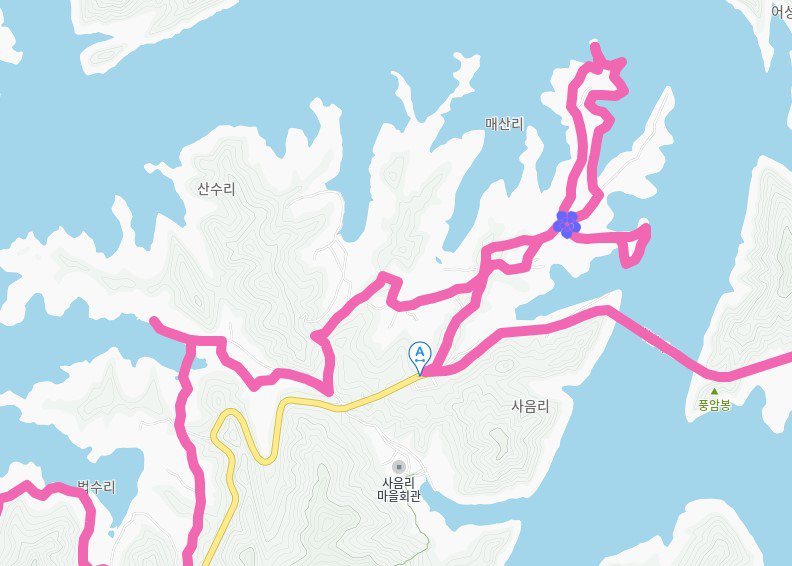 카카오 맵에 표시되지 않은 길이 뚜렸해 왕복했다.