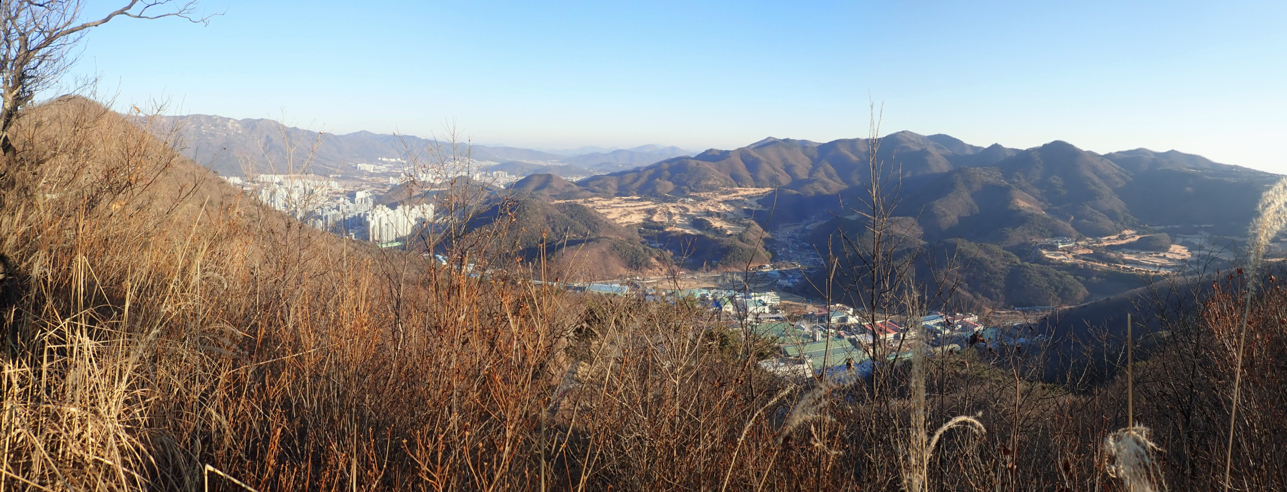 동쪽. 우중간 지나온 용천산과 양산시내. 멀리 울산 대운산-불광산-삼각산능선.